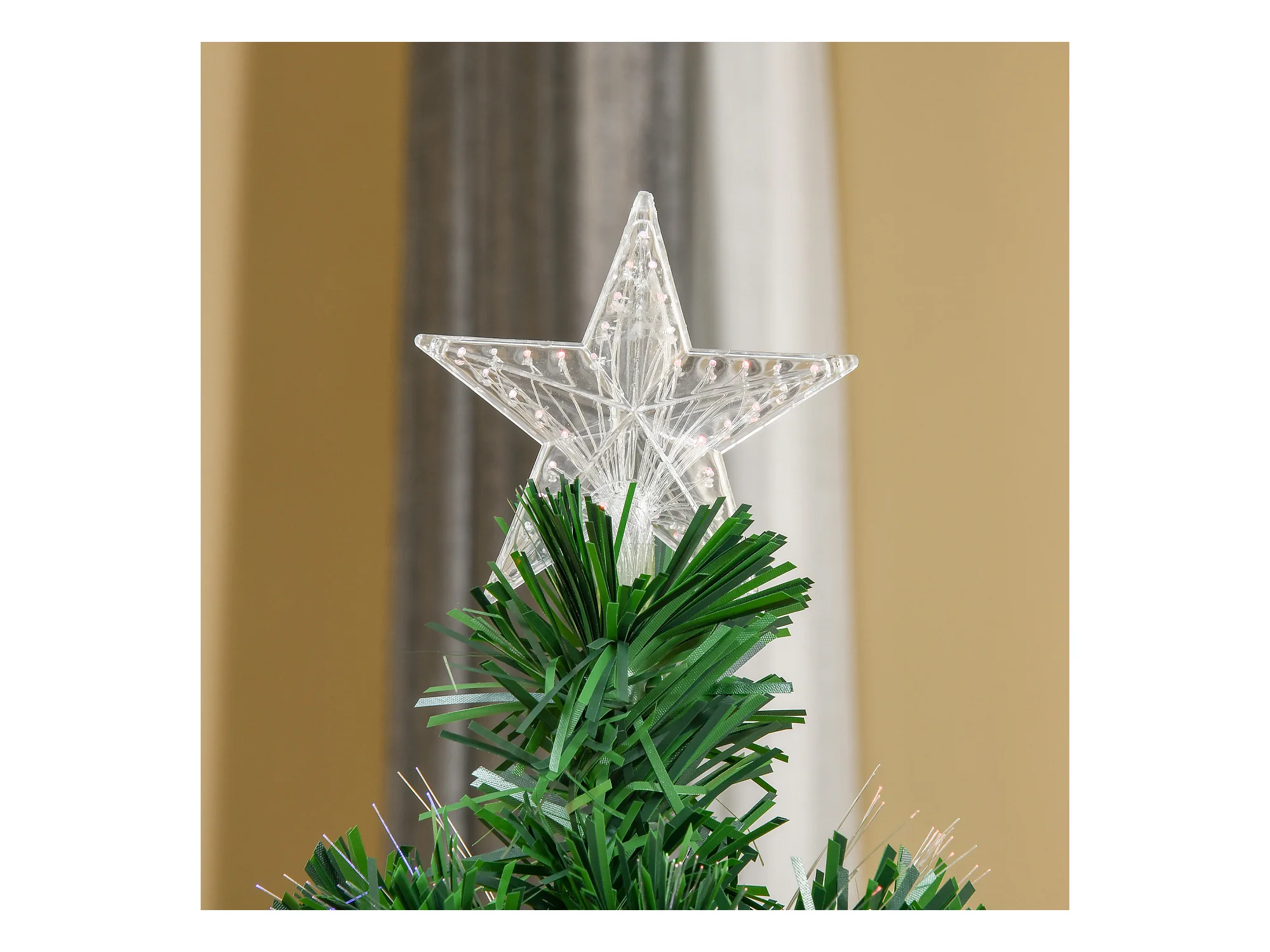 Sapin de Noël artificiel lumineux fibre optique multicolore + support pied Ø 60 x 120H cm 130 branches étoile sommet brillante vert