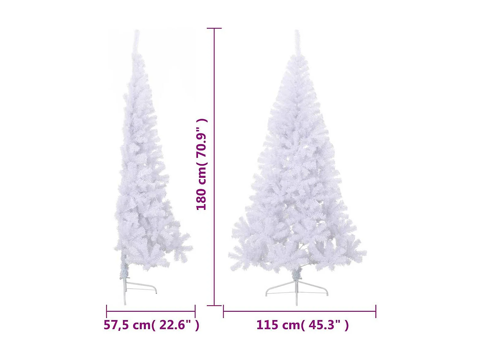 Sapin de Noël artificiel moitié avec support blanc 180 cm PVC