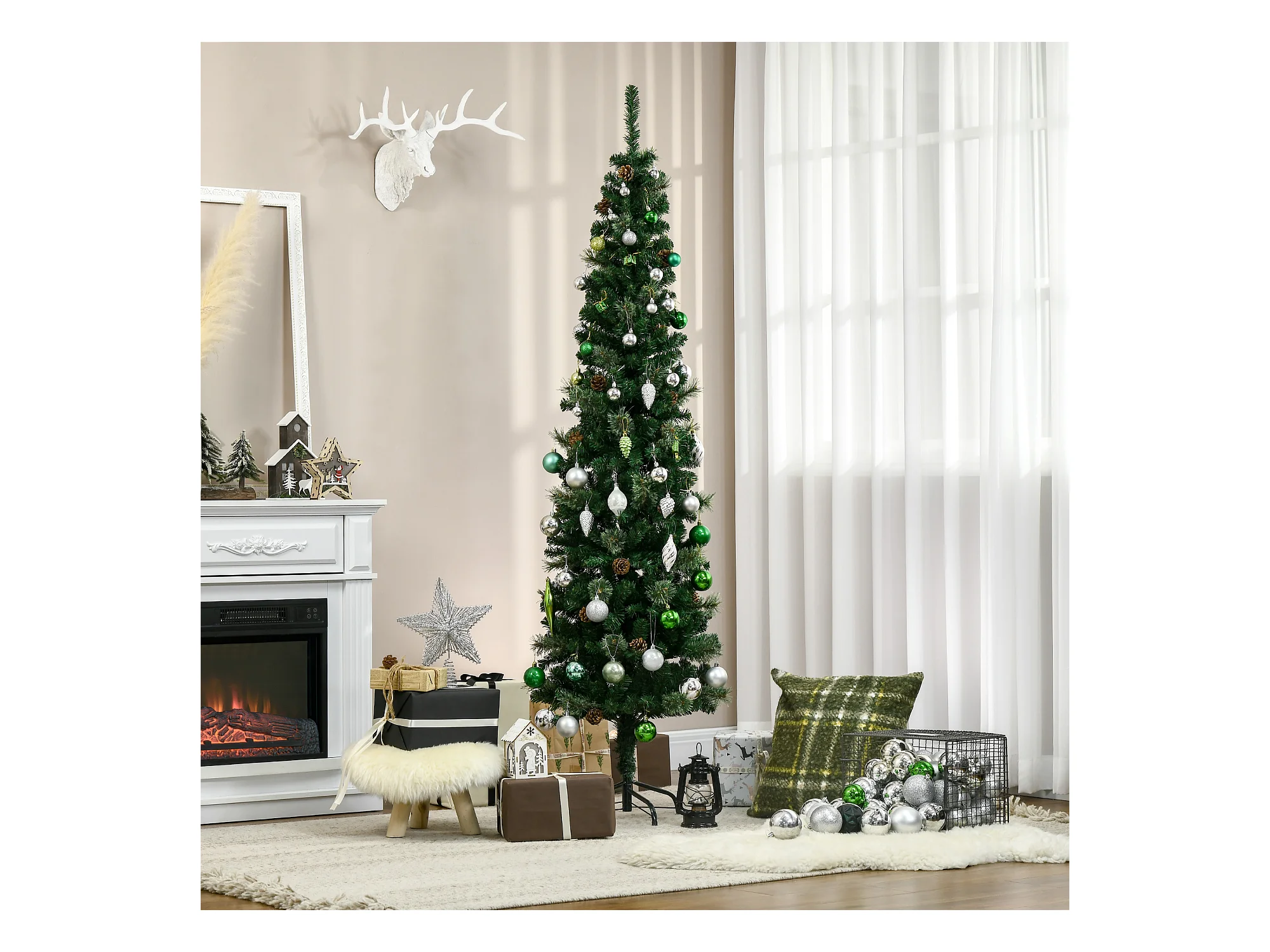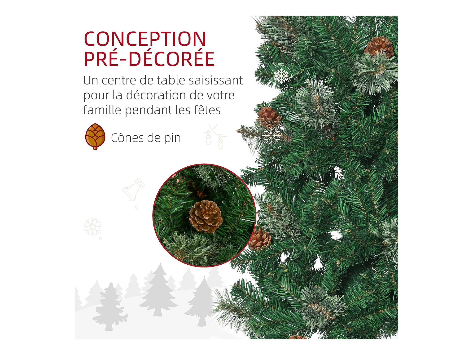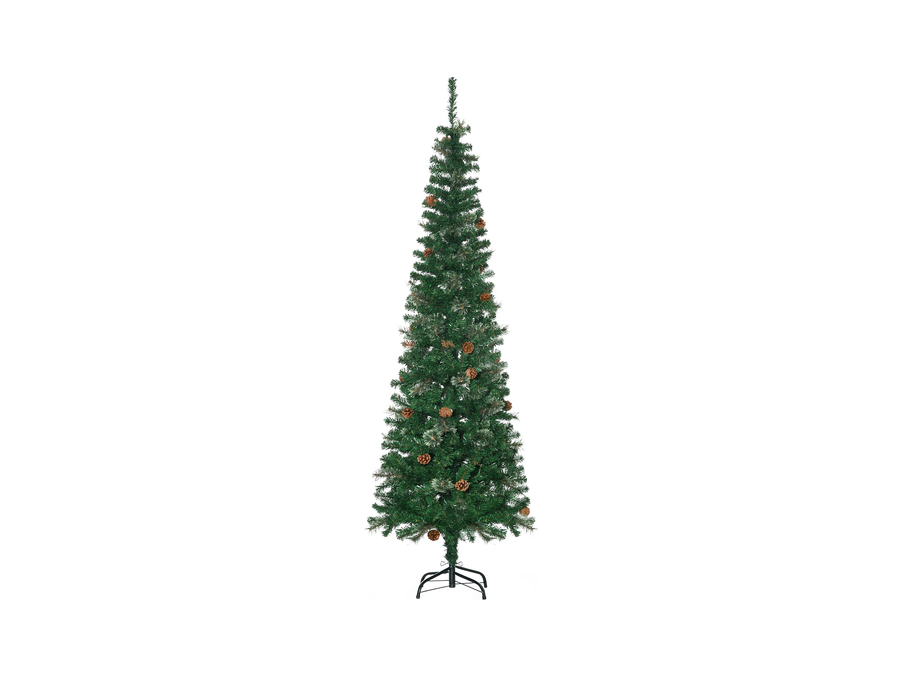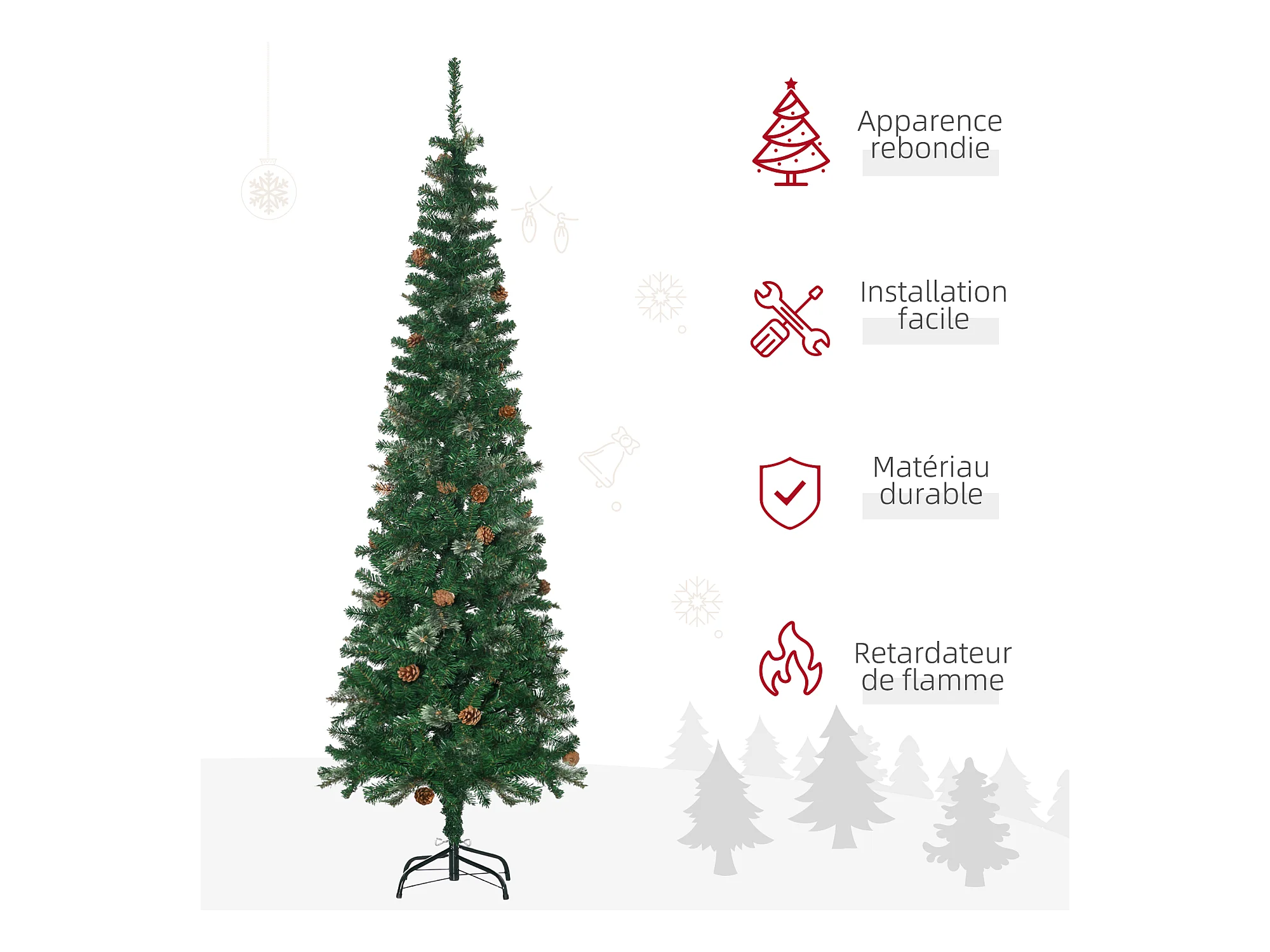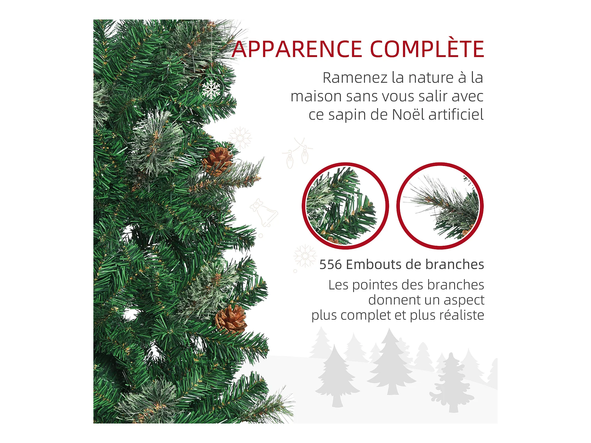 Sapin de Noël artificiel Ø 54 x 195H cm - 556 branches épines grand réalisme - 42 pommes de pin - métal PVC vert