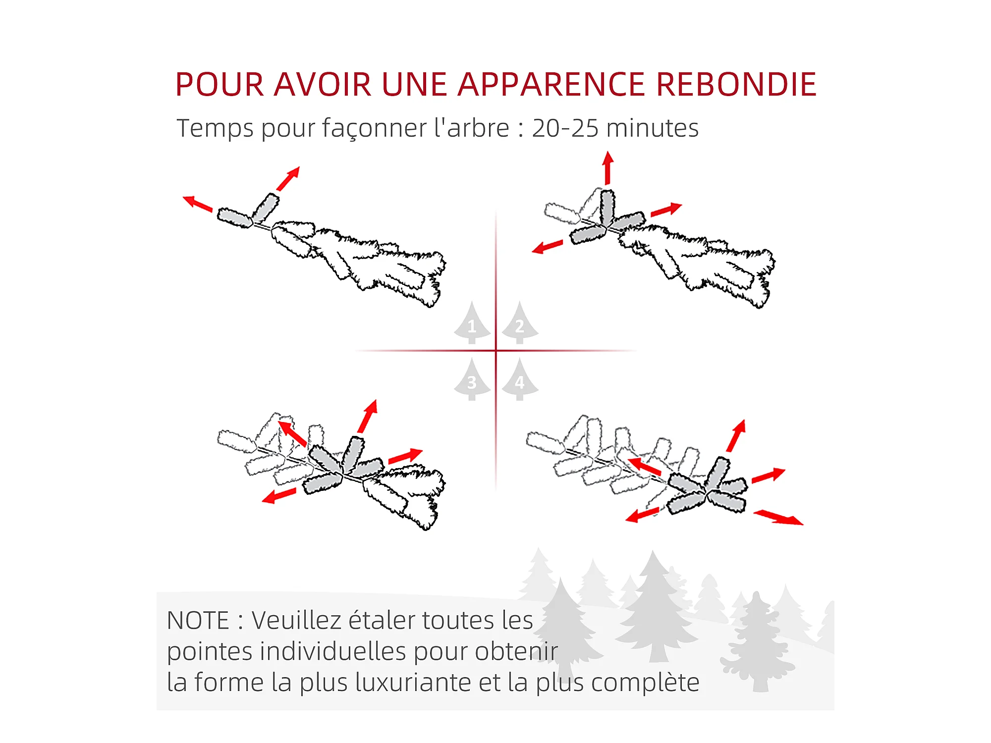 Sapin de noël artificiel 146 cm, 279 branches avec 150 led blanc chaud, aiguilles de pin