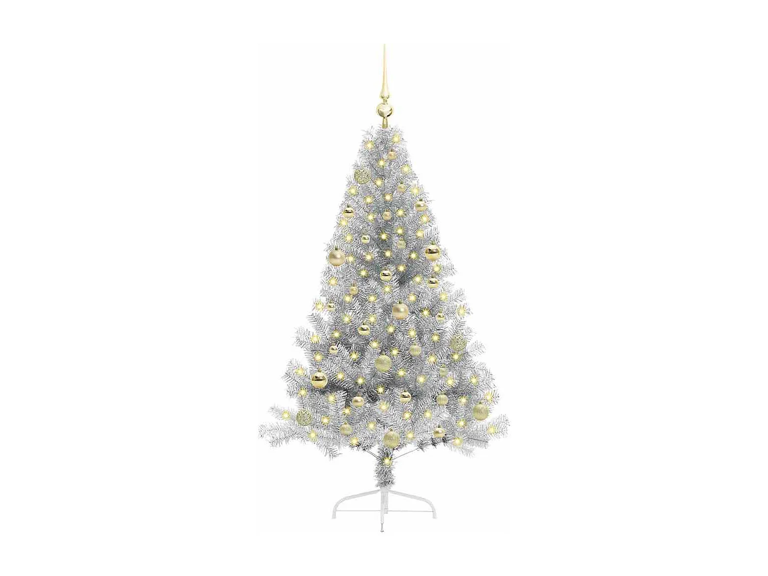 Arbre de Noël artificiel pré-éclairé/boules argenté 150 cm PET