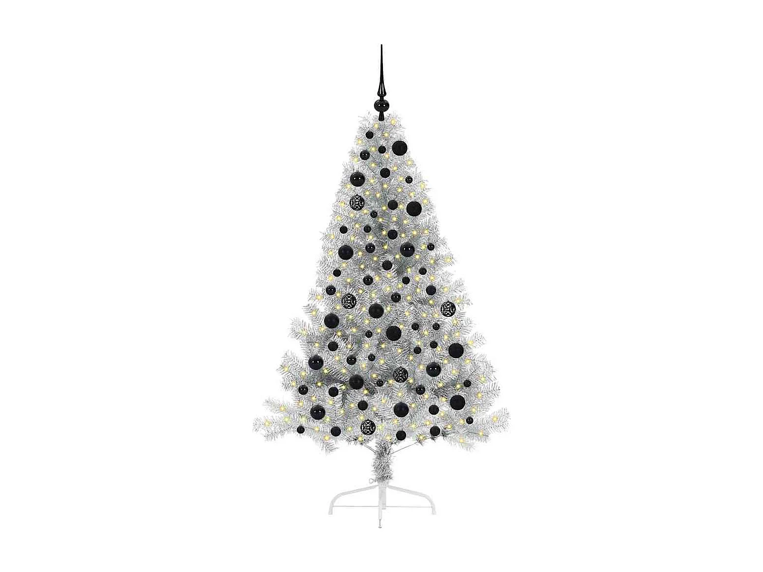 Arbre de Noël artificiel pré-éclairé/boules argenté 180 cm PET