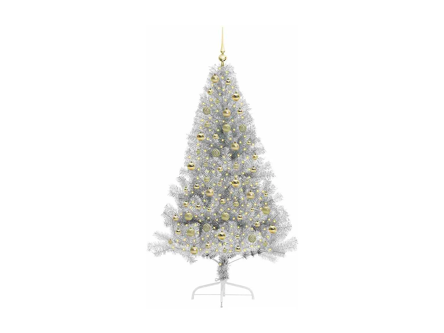 Arbre de Noël artificiel pré-éclairé/boules argenté 180 cm PET