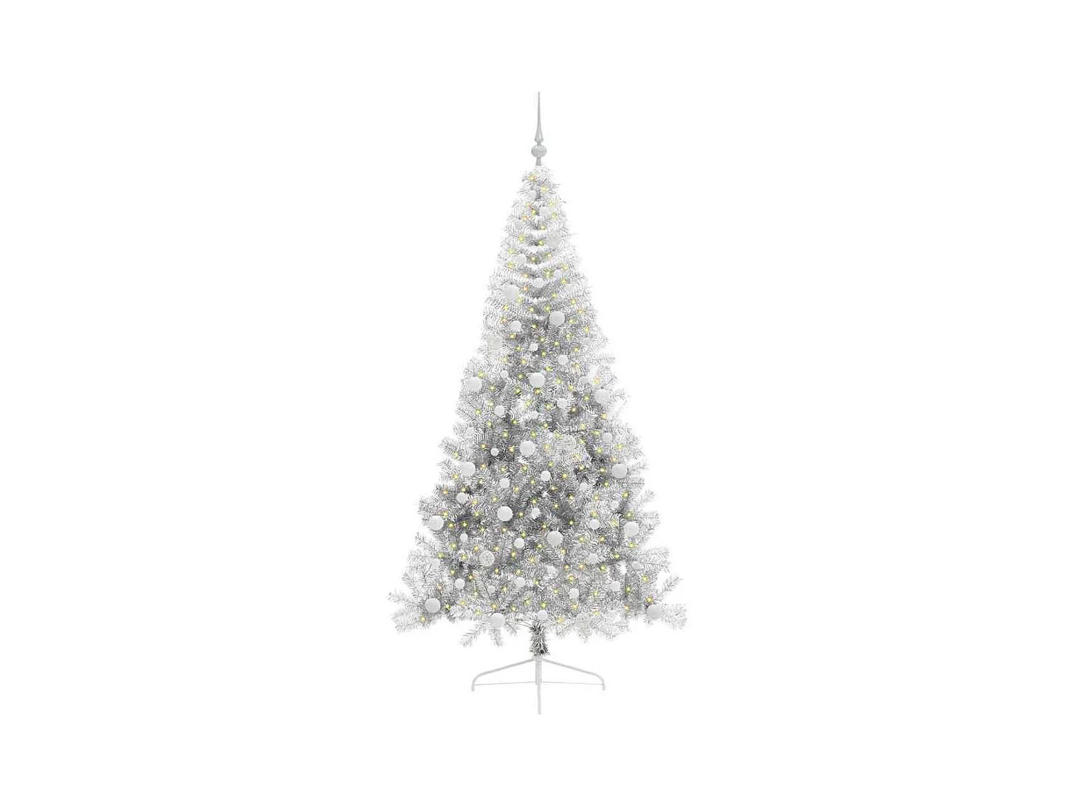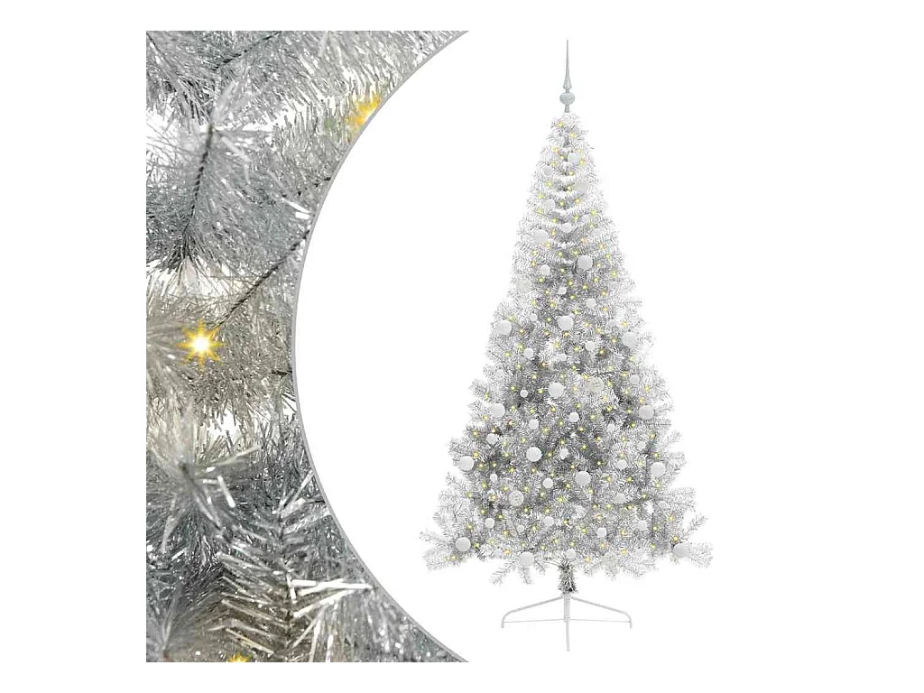 Arbre de Noël artificiel pré-éclairé/boules argenté 240 cm PET