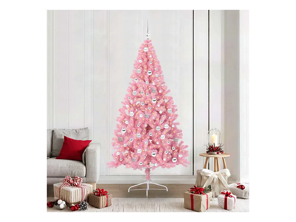 Sapin de Noël artificiel pré-éclairé Rose 210 cm PVC