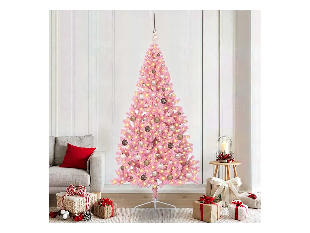 Sapin de Noël artificiel pré-éclairé Rose 210 cm PVC