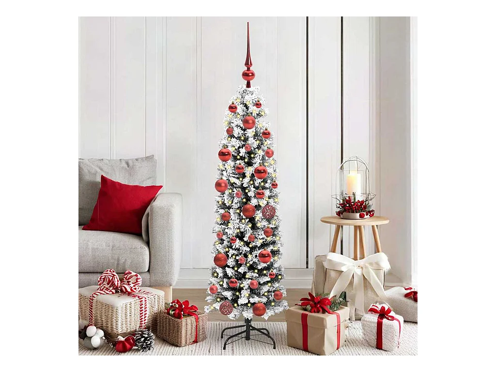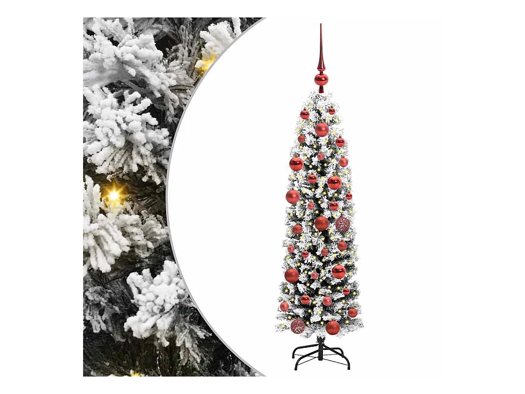 Demi sapin de Noël artificiel mince avec neige floquée 150 cm