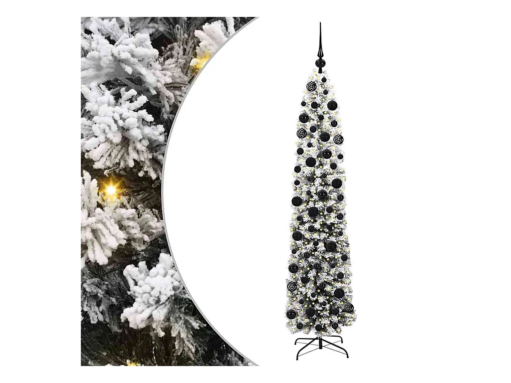 Demi sapin de Noël artificiel mince avec neige floquée 180 cm
