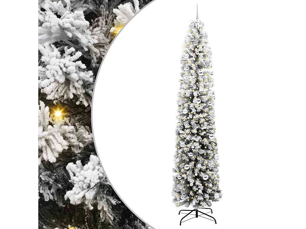 Sapin de Noël artificiel mince flocon de neige vert 240 cm PVC
