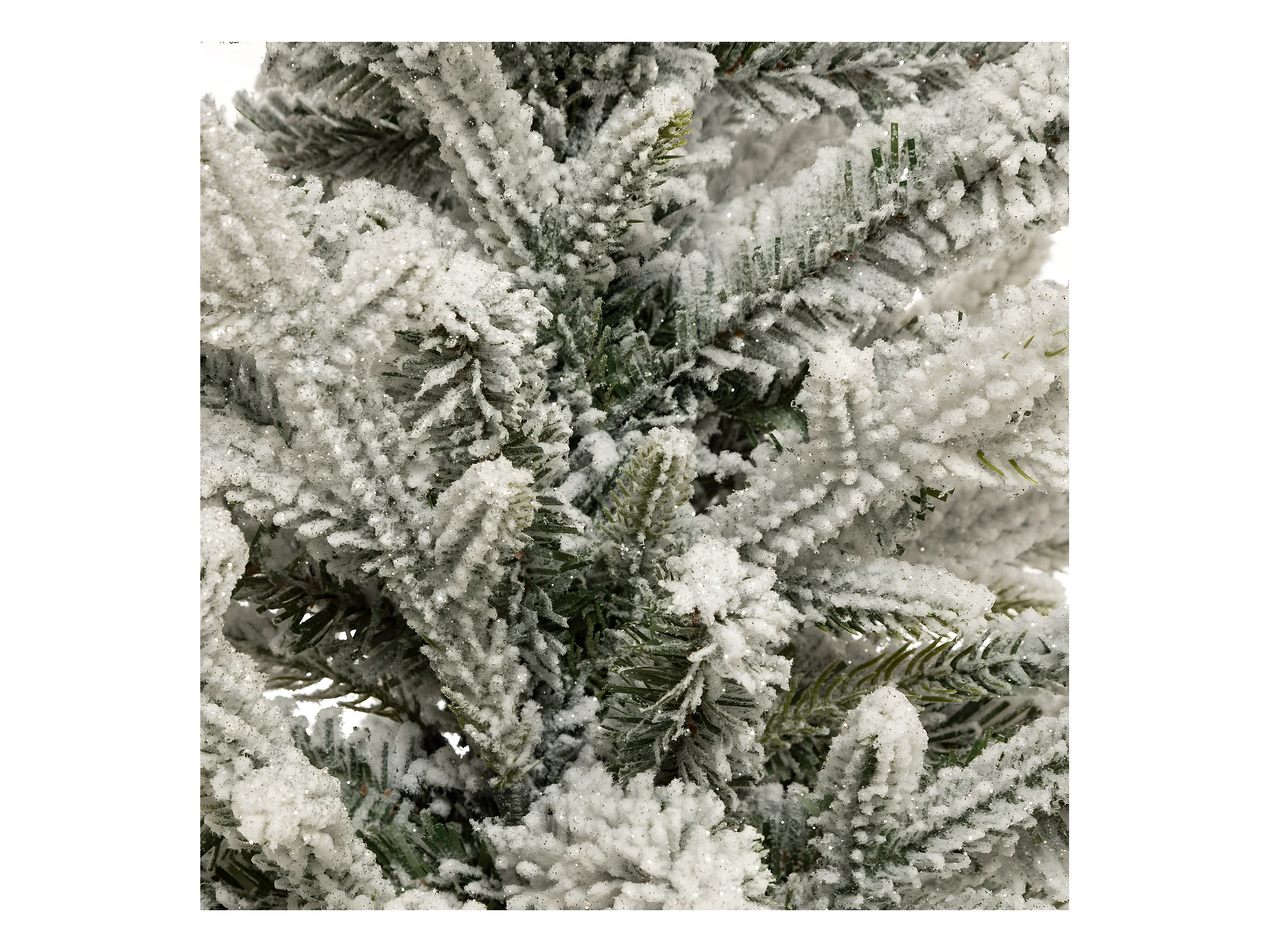 Sapin de Noël artificiel vert floqué blanc et pailleté dans un pot argenté H 70 cm