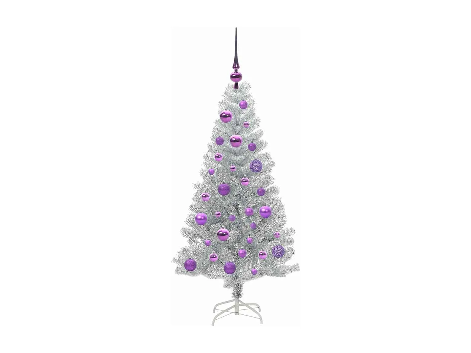 Arbre de Noël artificiel pré-éclairé/boules argenté 120 cm PET