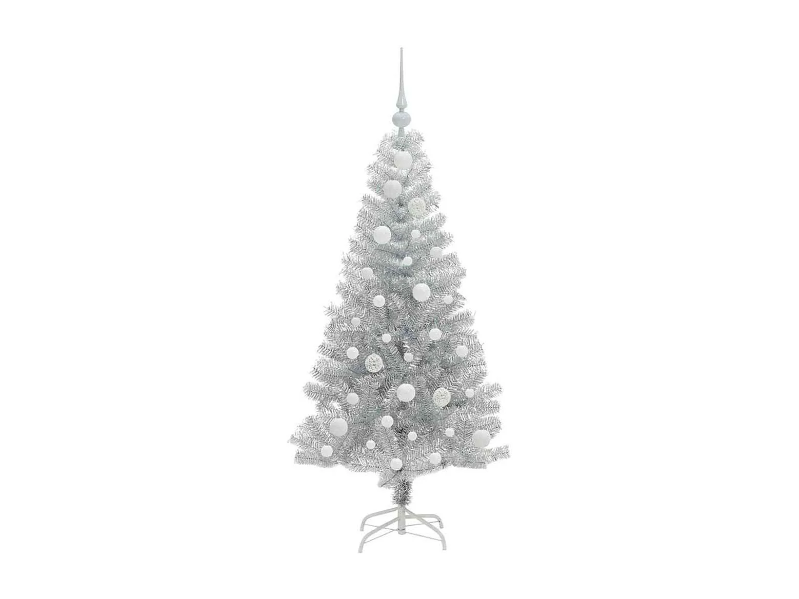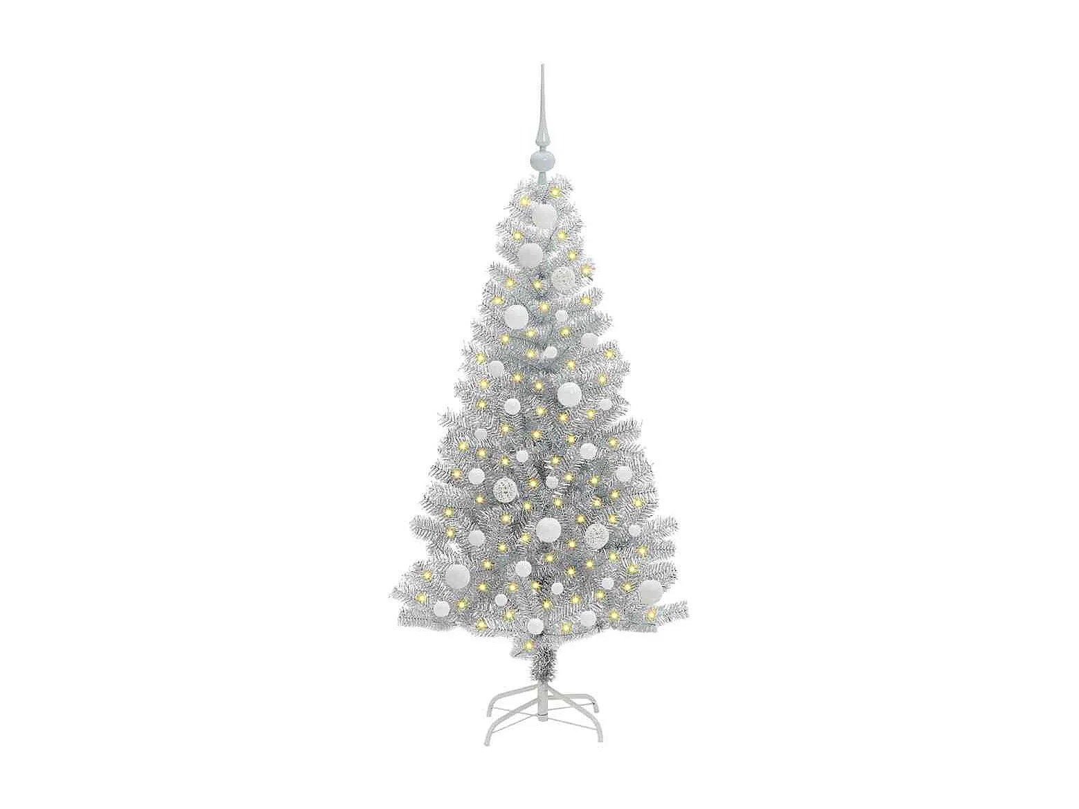Arbre de Noël artificiel pré-éclairé/boules argenté 120 cm PET