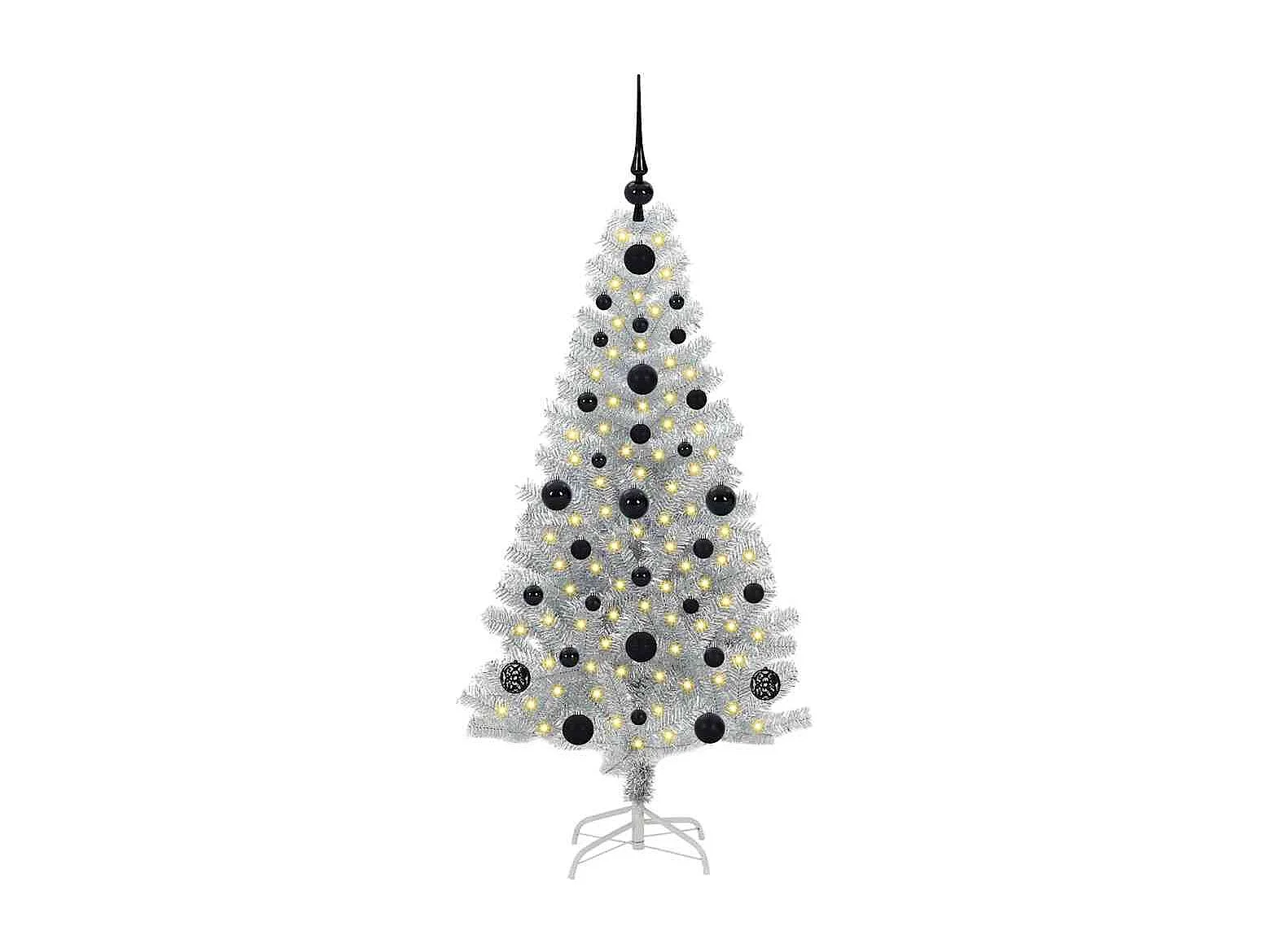 Arbre de Noël artificiel pré-éclairé/boules argenté 120 cm PET