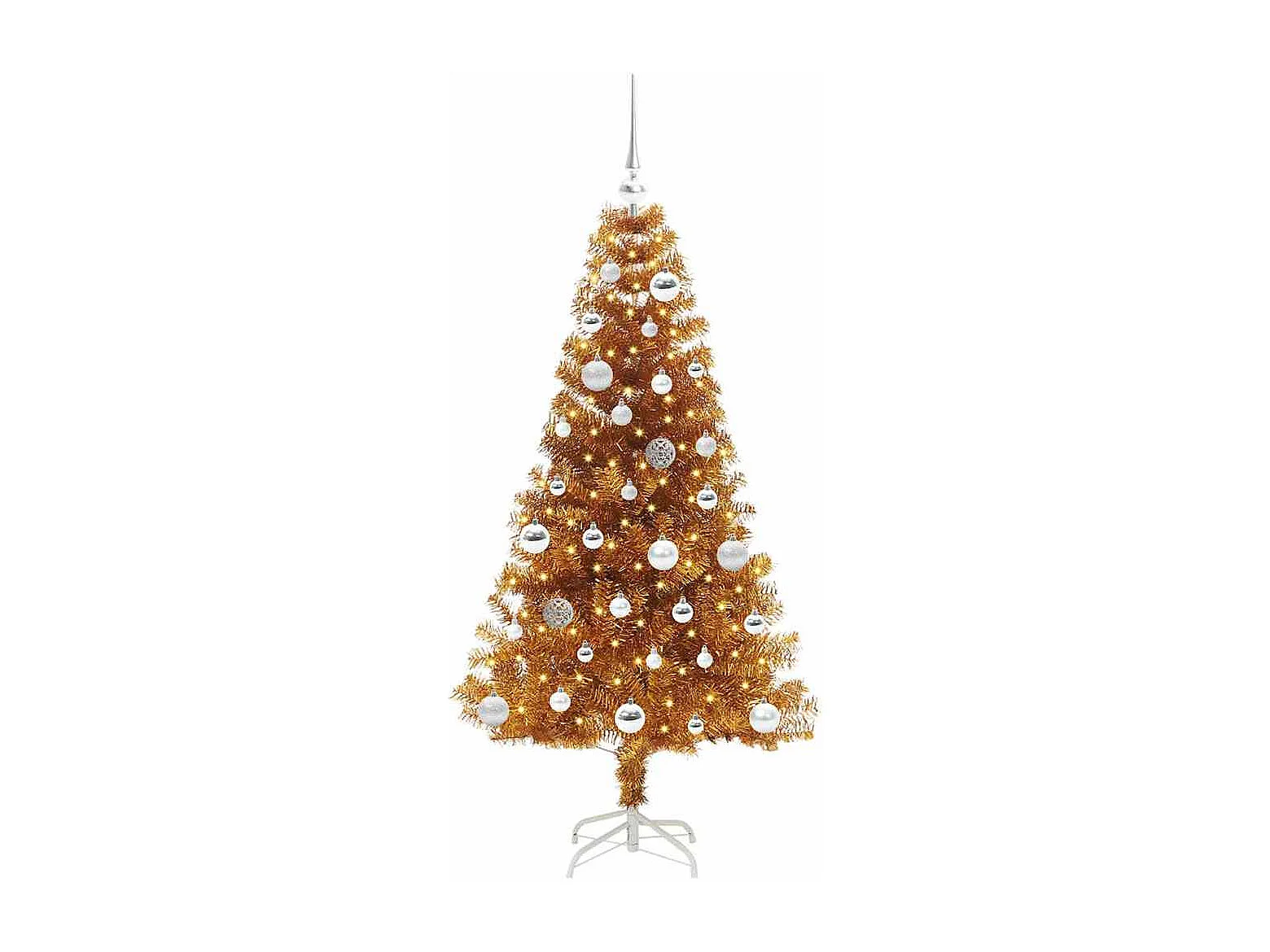 Arbre de Noël artificiel pré-éclairé/boules argenté 150 cm PET