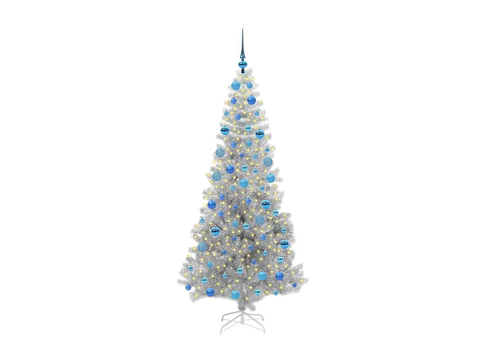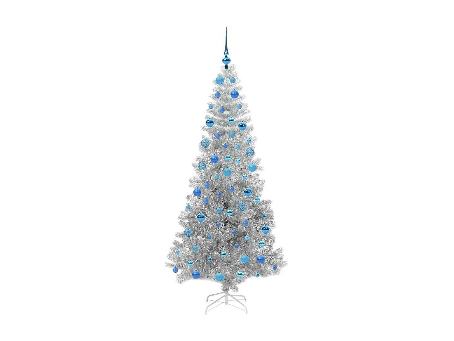 Arbre de Noël artificiel pré-éclairé/boules argenté 180 cm PET