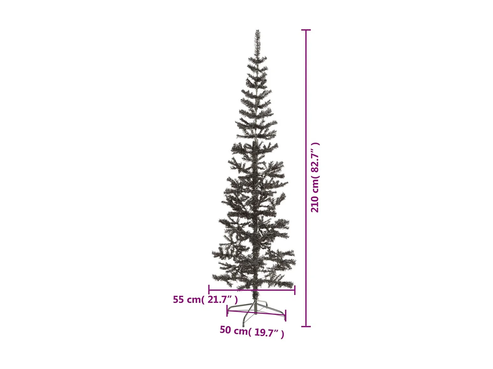 Demi sapin de Noël artificiel avec support Noir 210 cm PVC