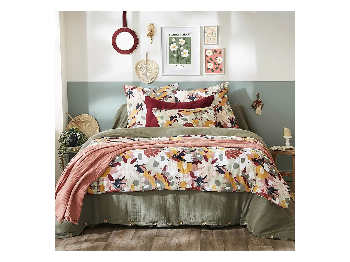 SARAH - Coussin Déhoussable 40x60cm Gaze de Coton Imprimé Rose Imprimé Floral
