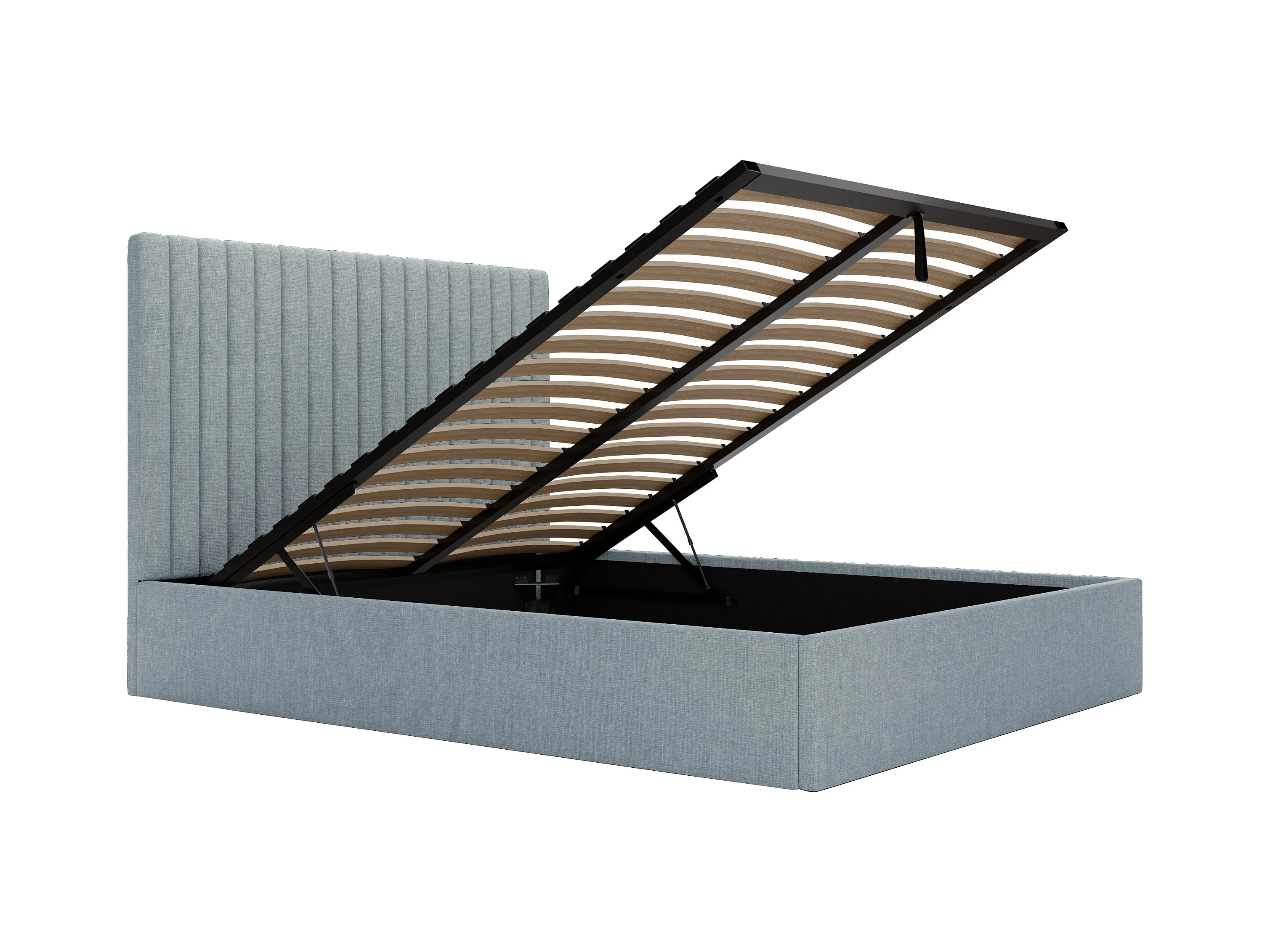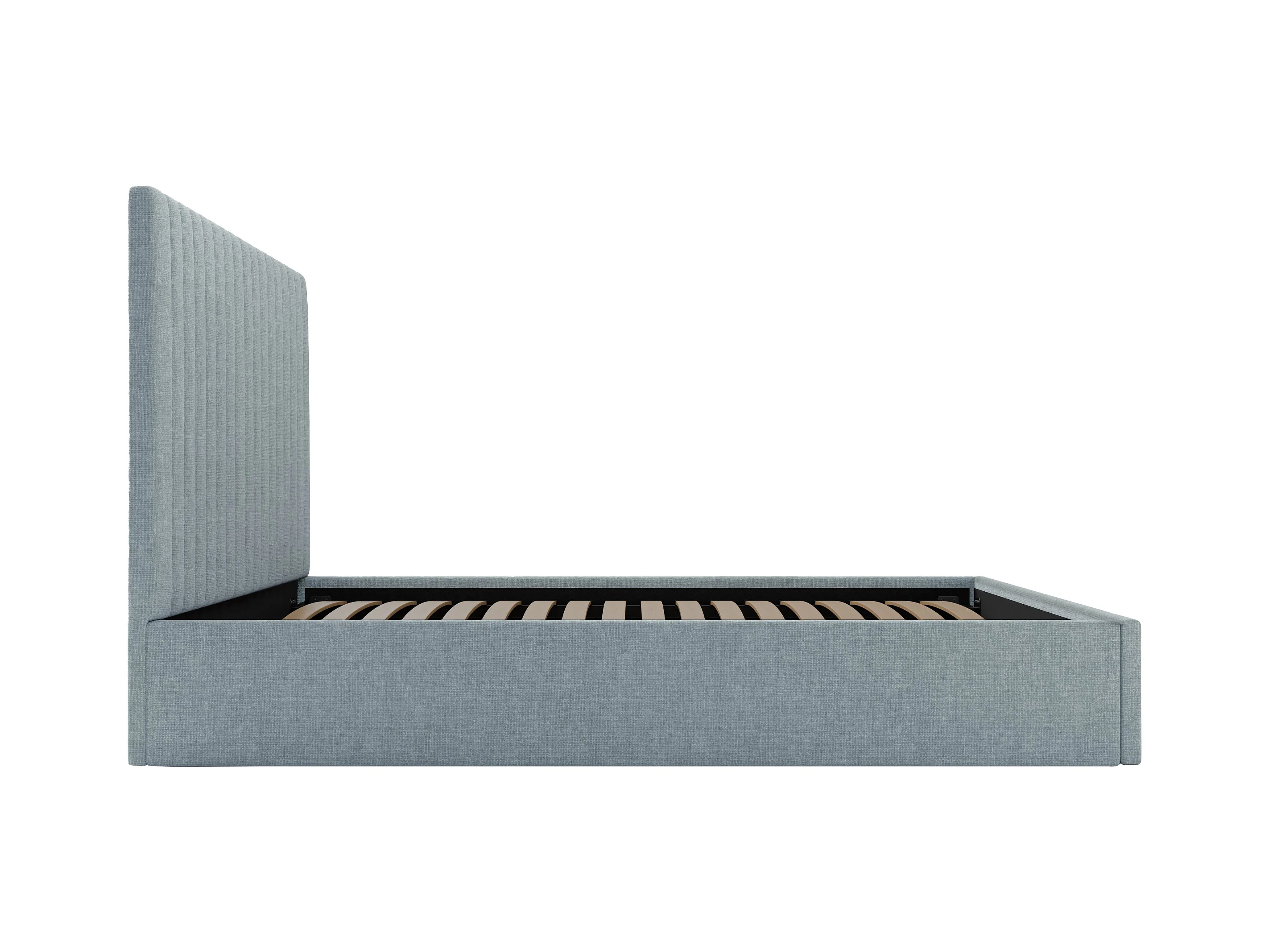 Lit coffre 180 x 200 cm avec tête de lit coutures verticales - Tissu - Bleu ciel - SARAH