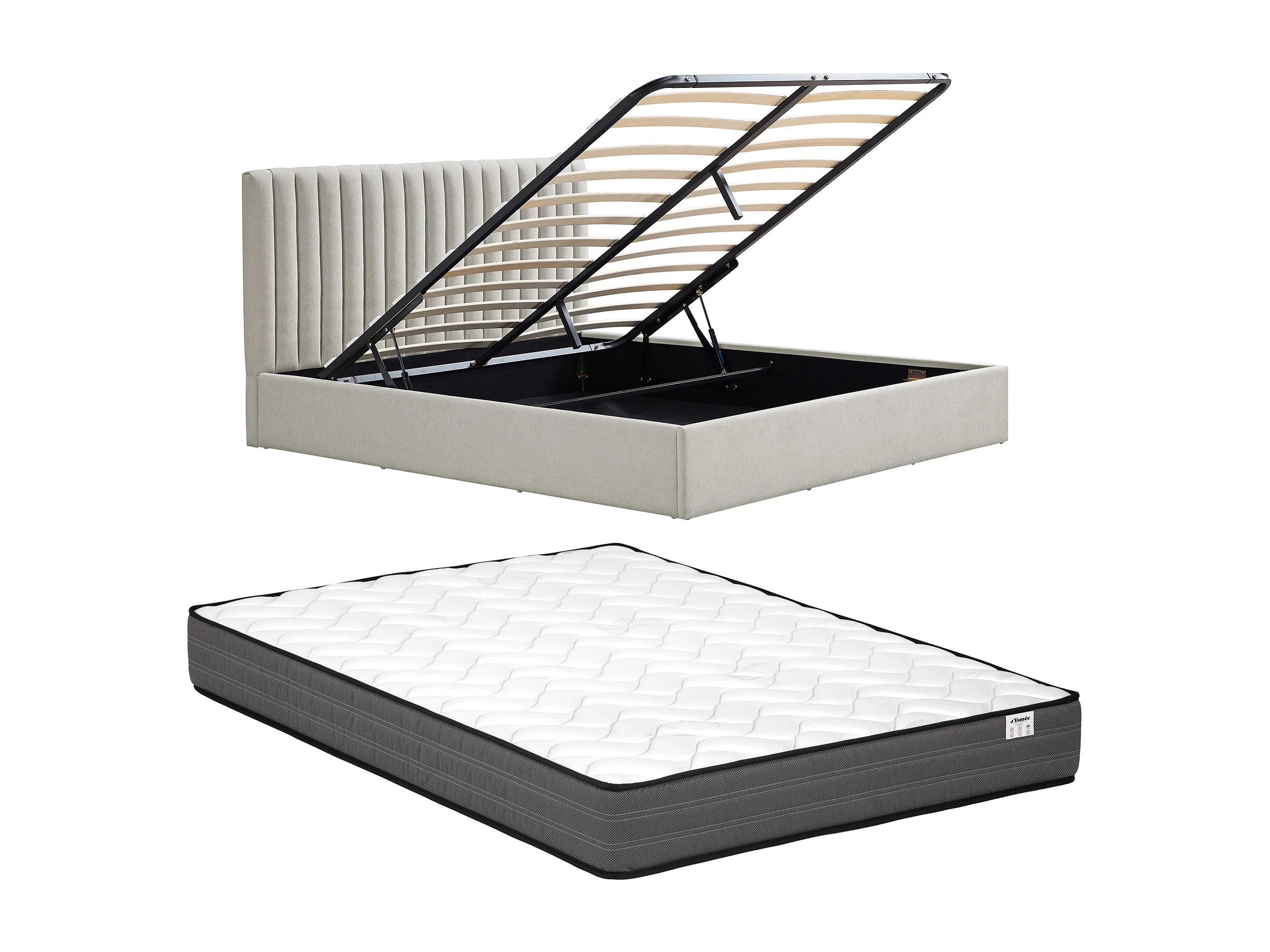 Lit coffre 160 x 200 cm – Tissu – Gris clair + Matelas - SARANELI