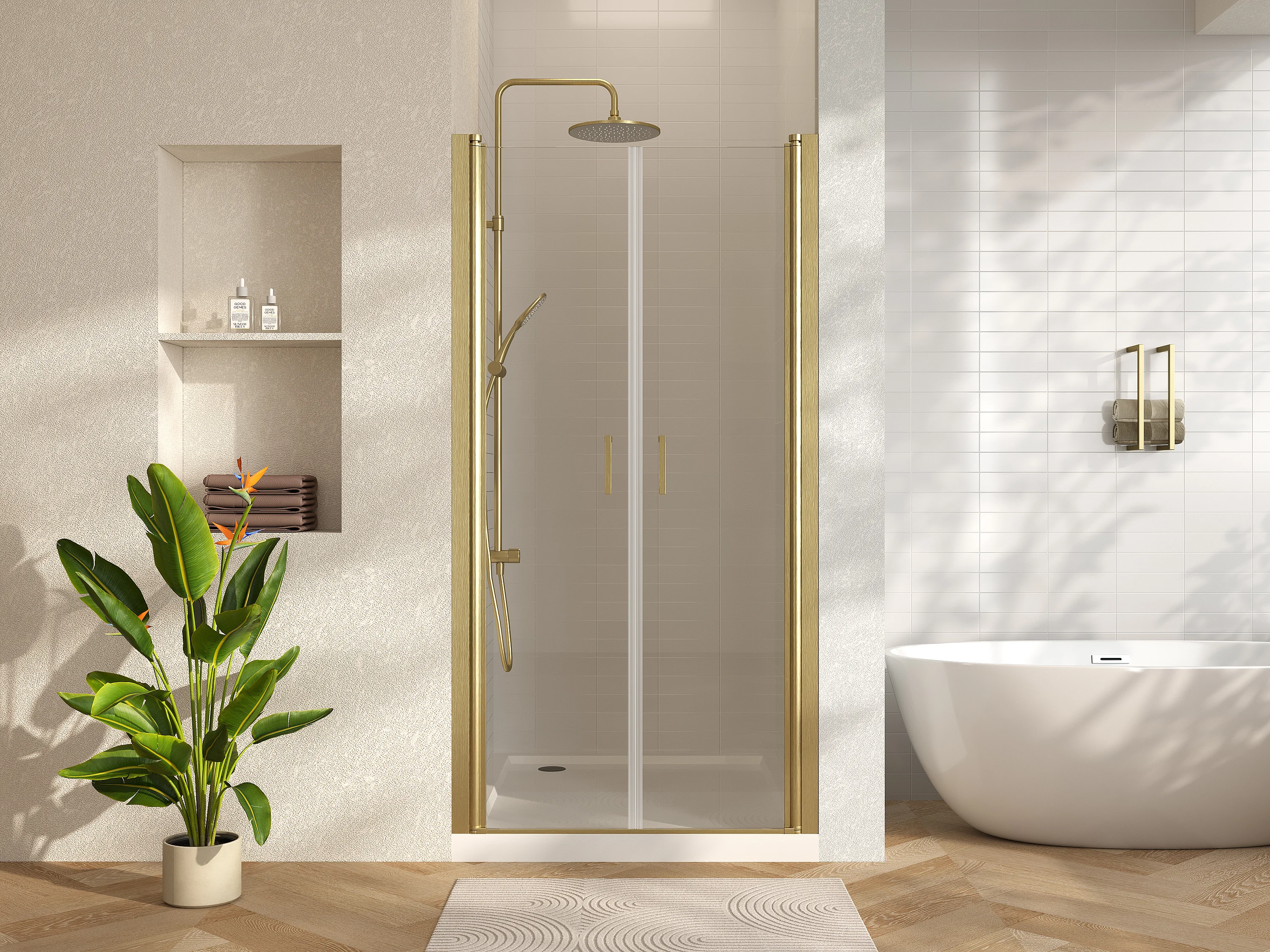 Porte de douche battante - 70 x 195 cm - Doré - Verre trempé - SARASOTA