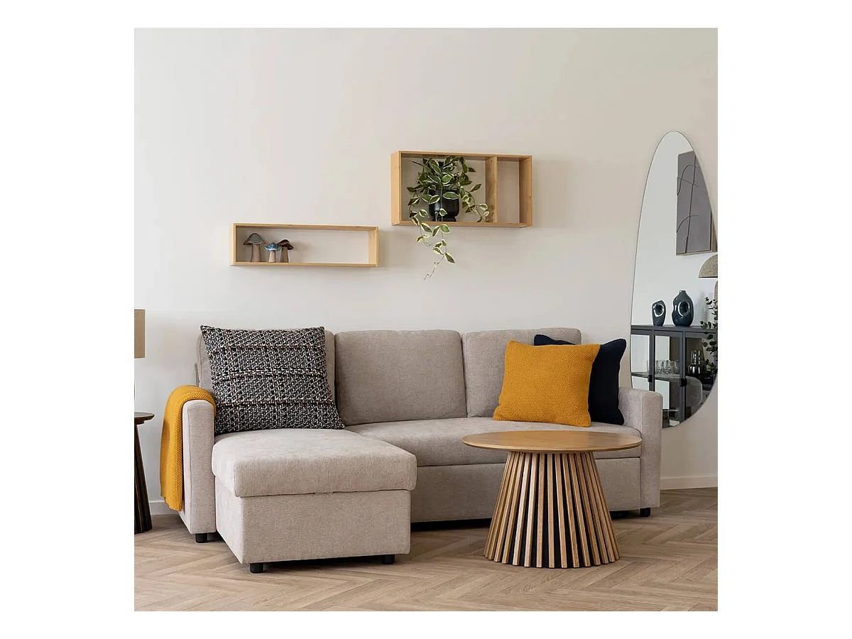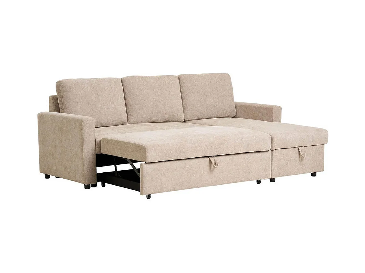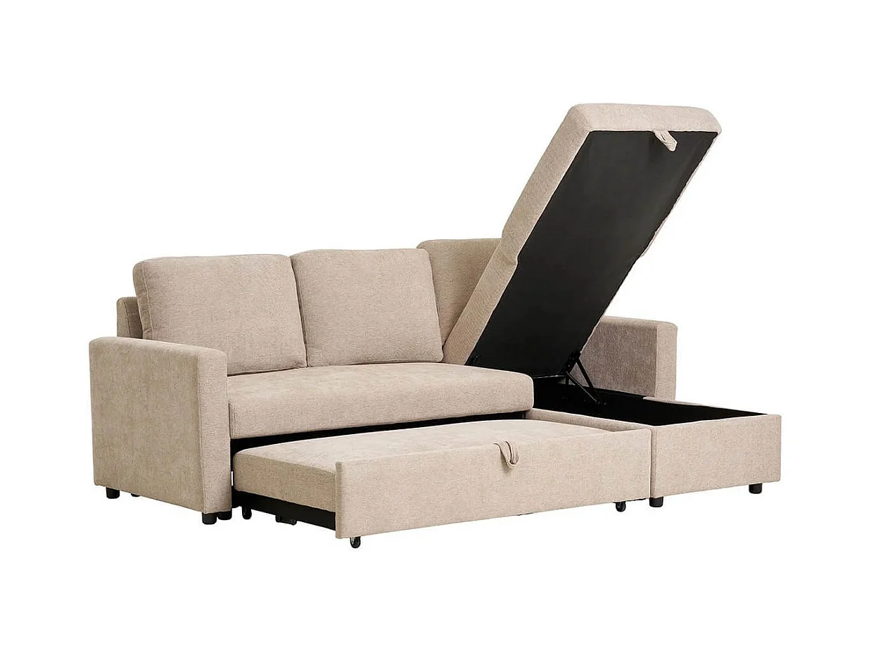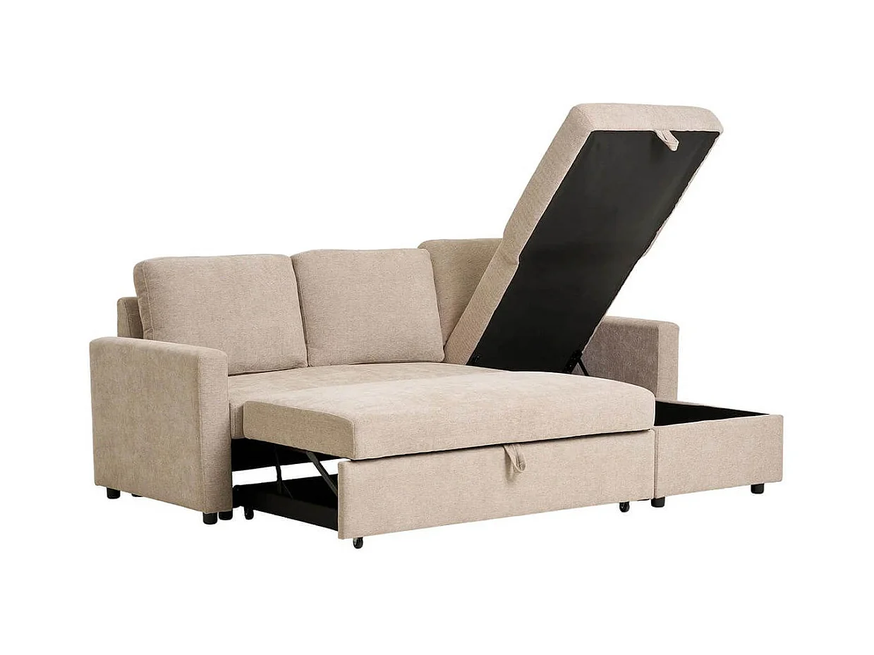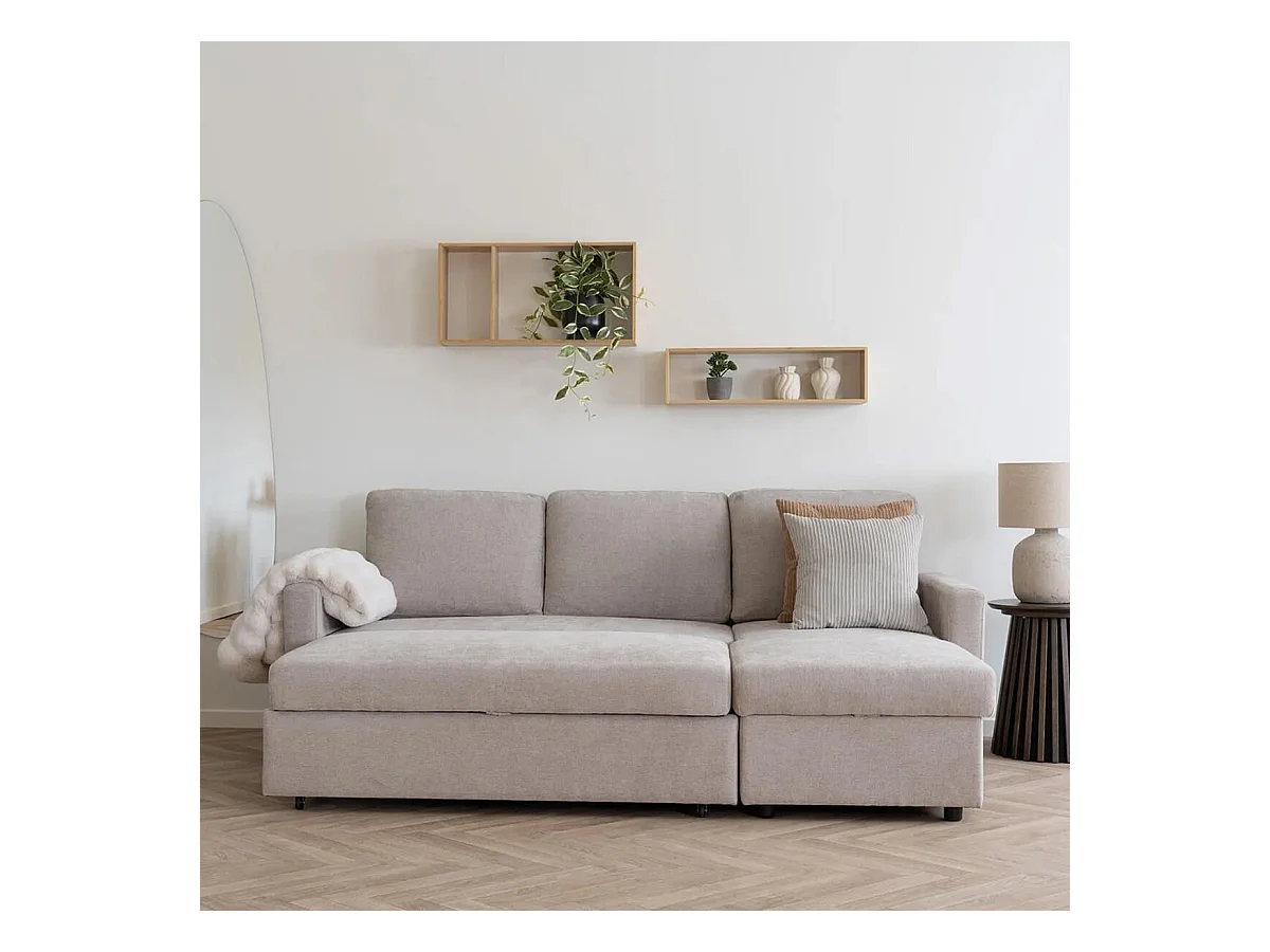 SAREK - Canapé Convertible Méridienne-coffre Réversible en Tissu Beige