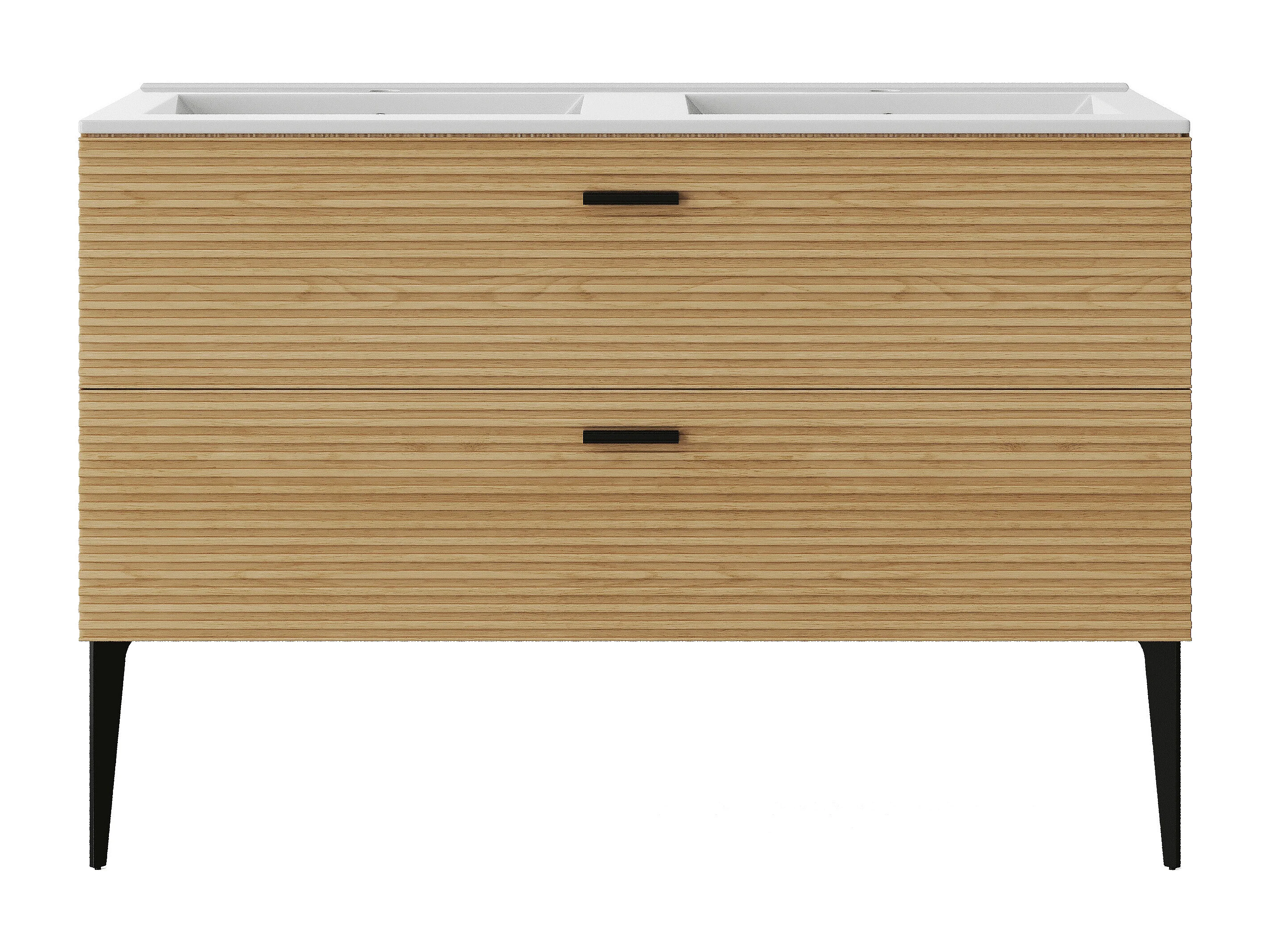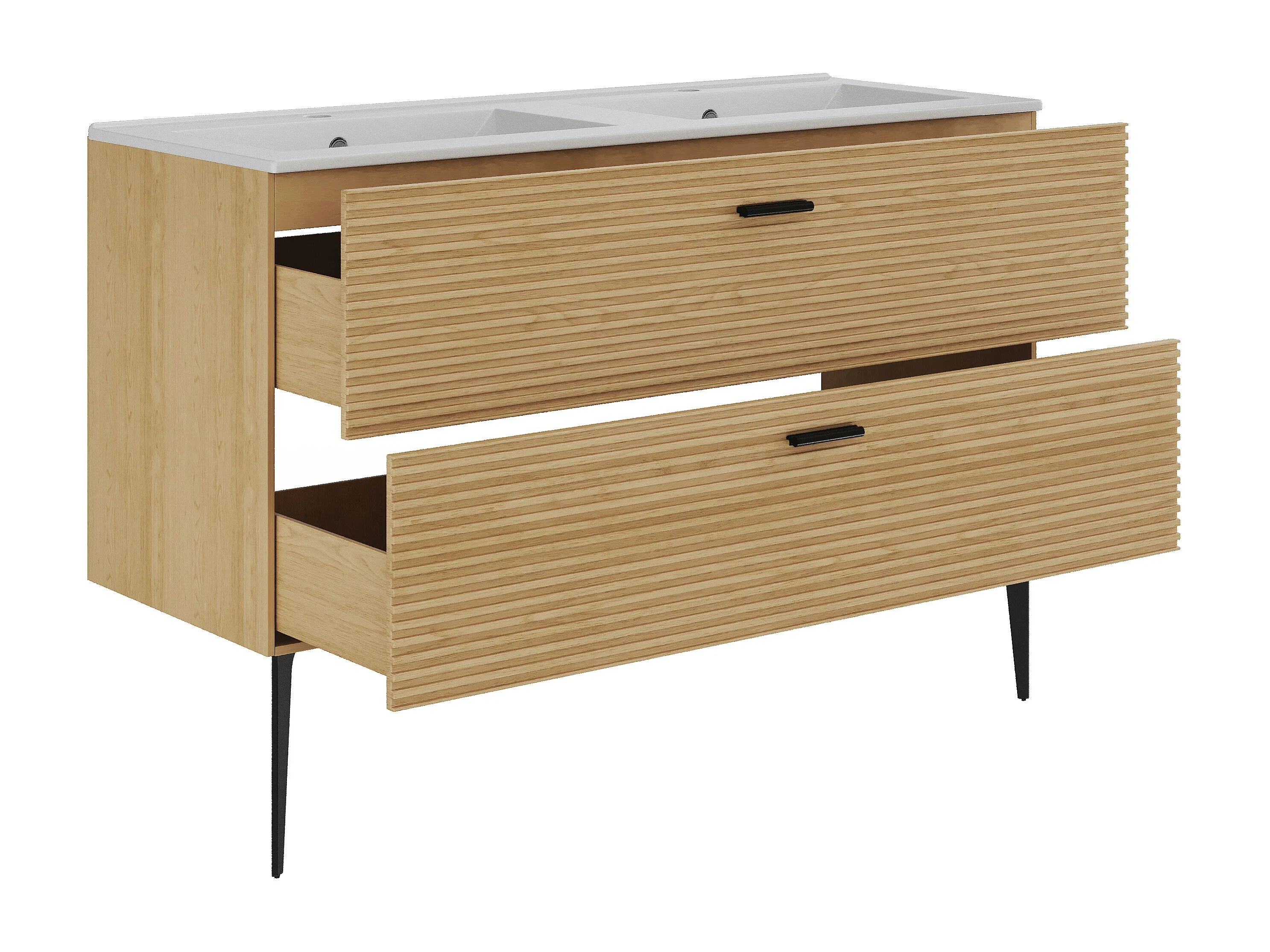 Meuble de salle de bain strié sur pieds avec vasque à encastrer - 2 tiroirs - Naturel clair - 120 cm - SARONE