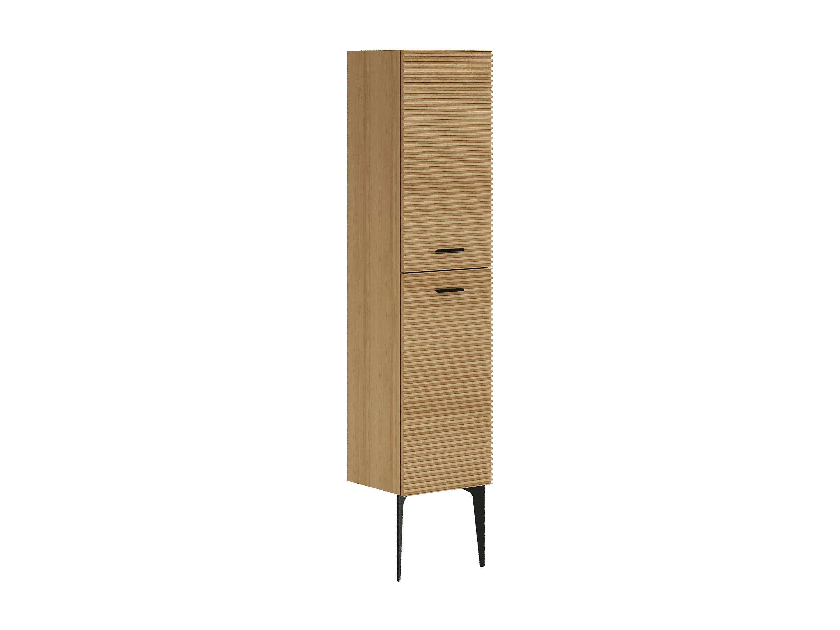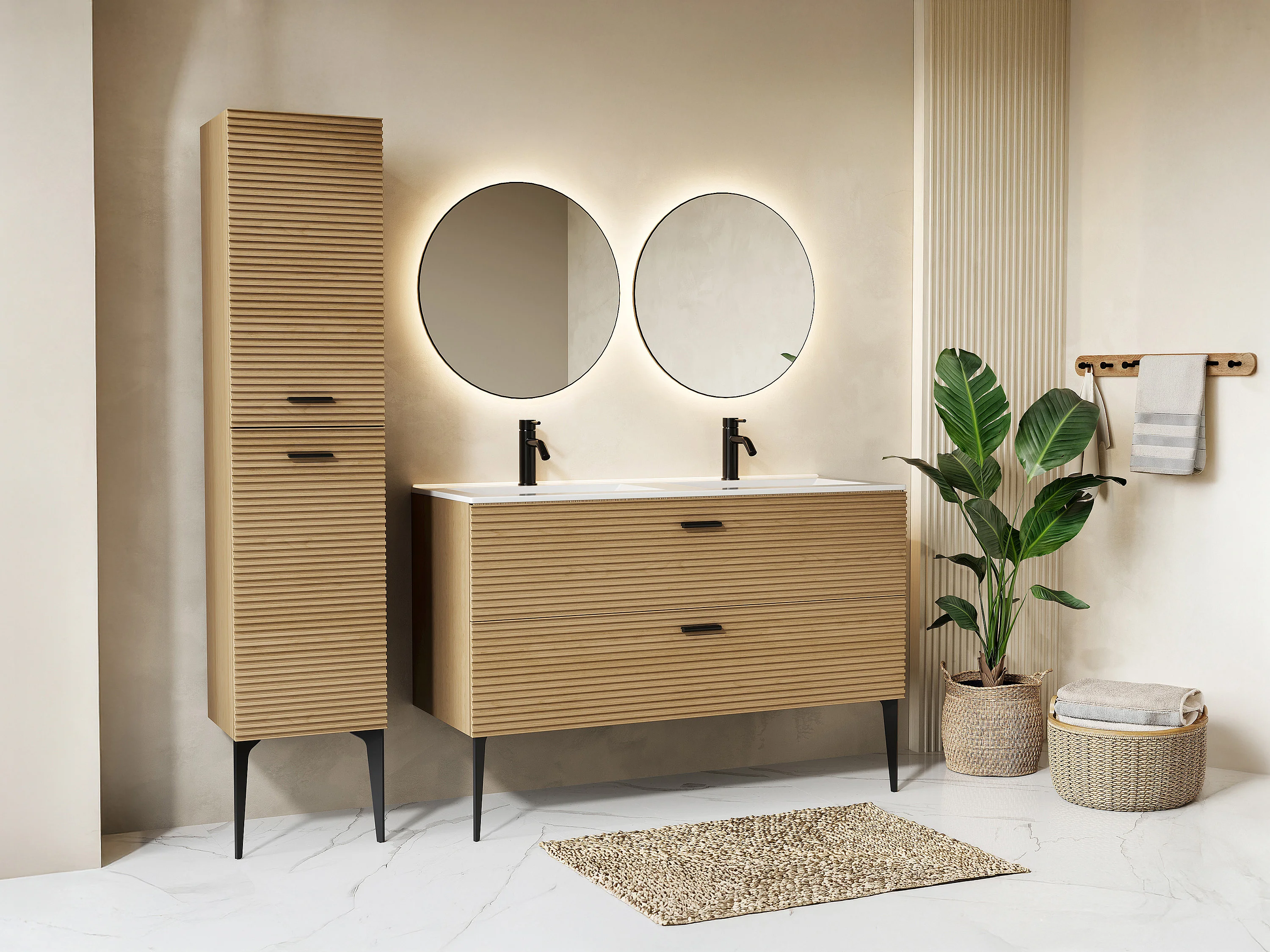 Meuble de salle de bain strié sur pieds avec vasque à encastrer et colonne - 2 tiroirs - Naturel clair - 120 cm - SARONE