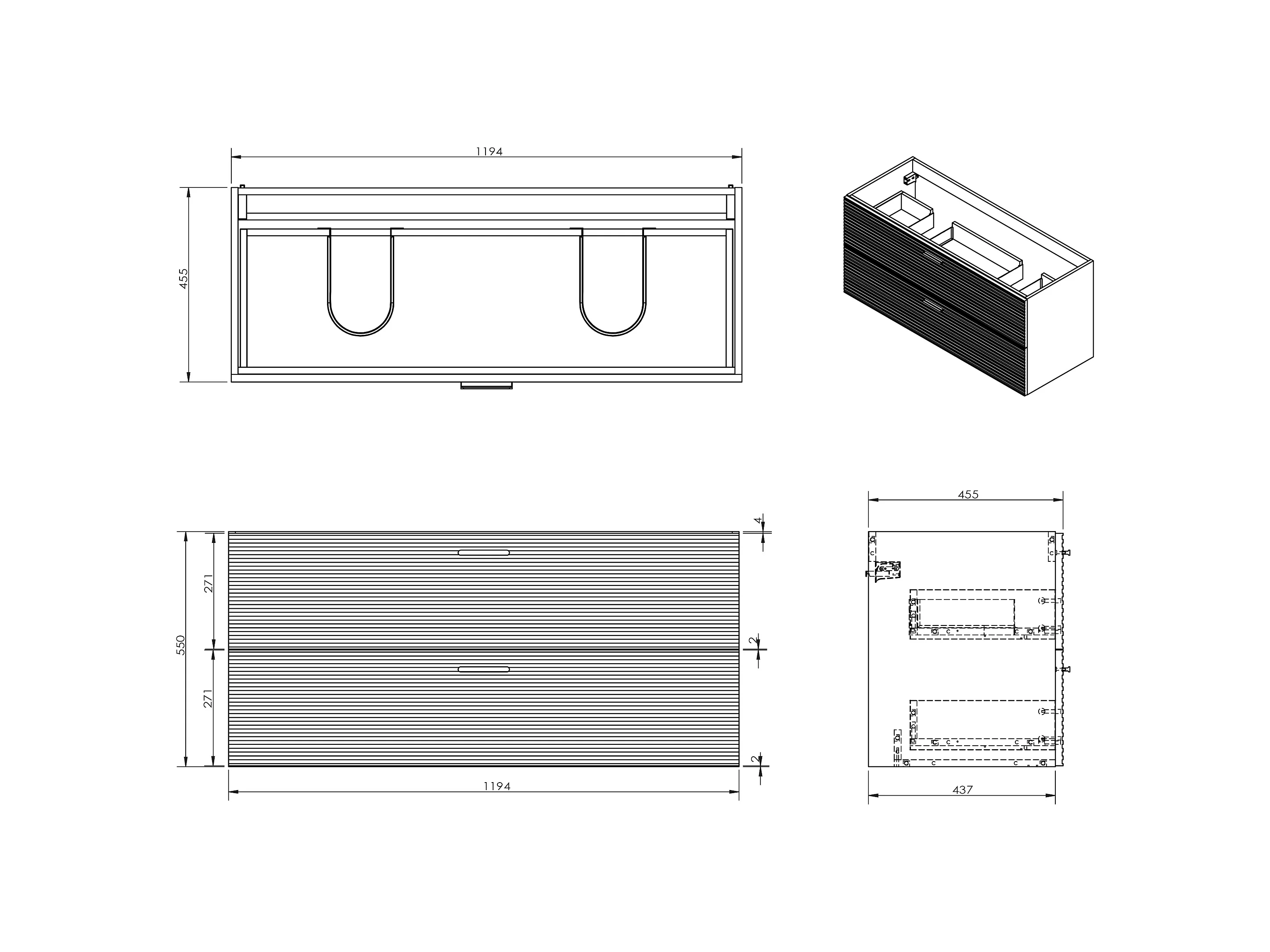 Meuble de salle de bain strié sur pieds avec vasque à encastrer, robinet et colonne - 2 tiroirs - Naturel clair - 120 cm - SARONE