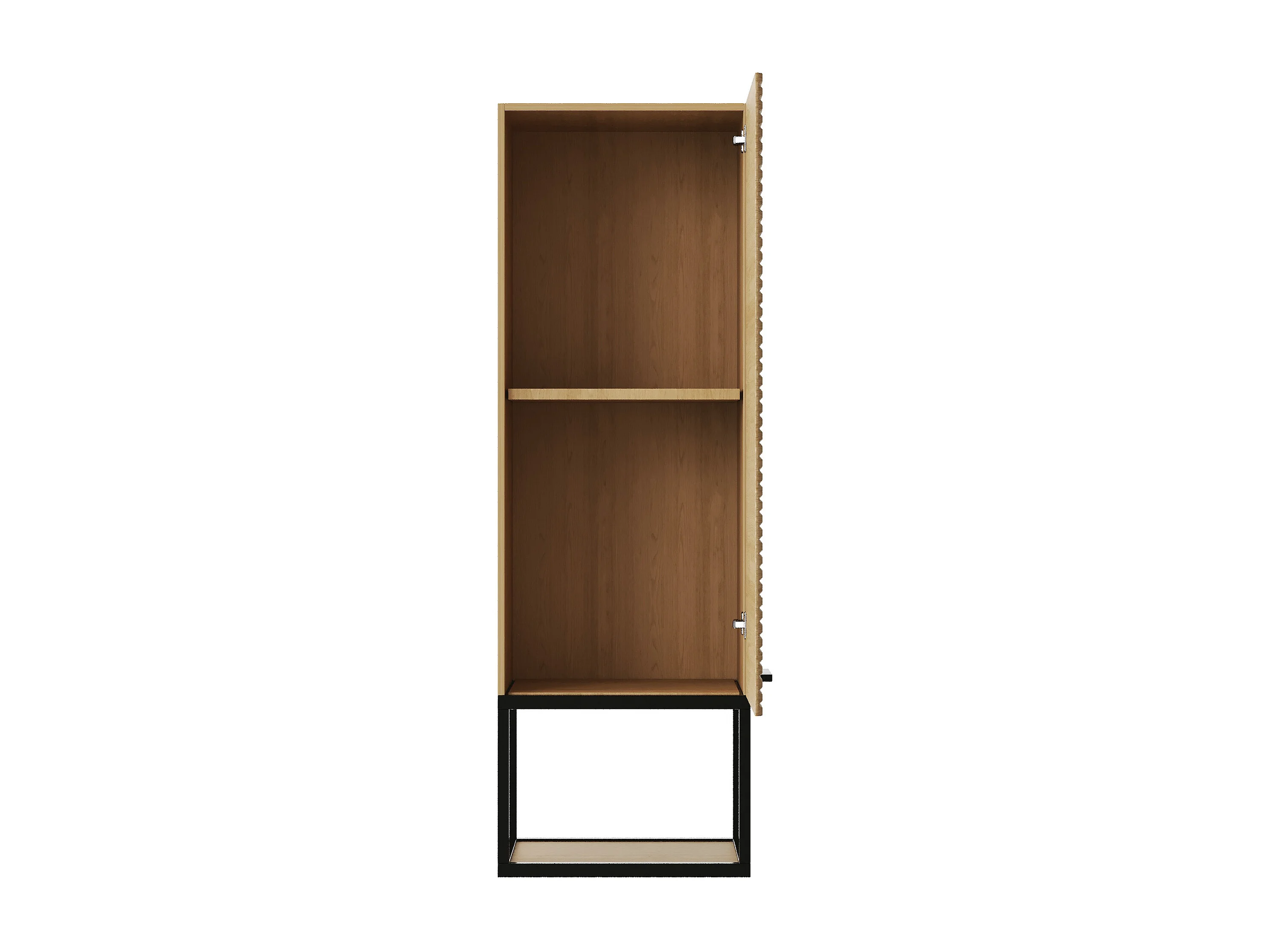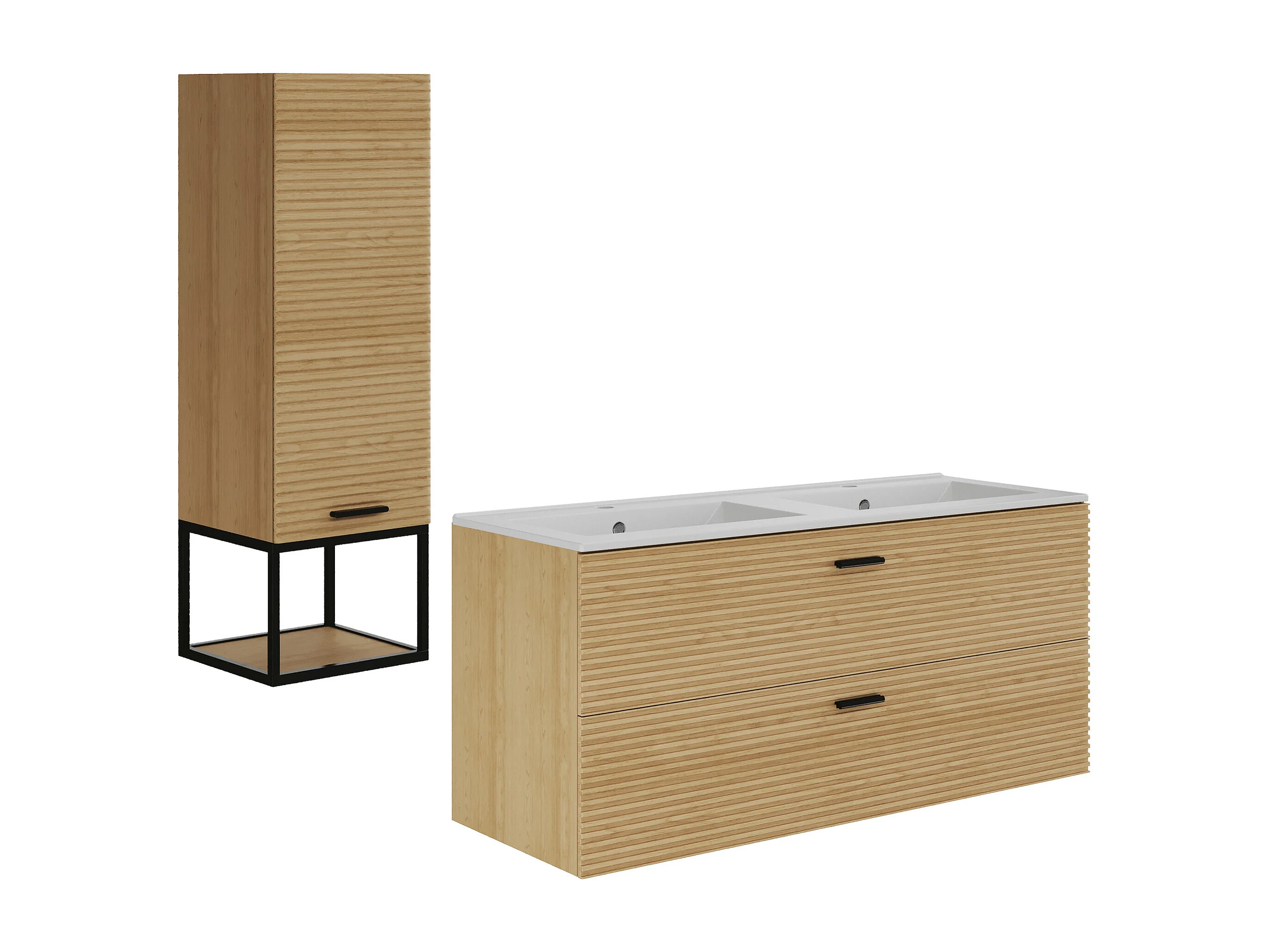 Meuble de salle de bain suspendu strié avec vasque à encastrer et colonne avec niche - 2 tiroirs - Naturel clair - 120 cm - SARONE