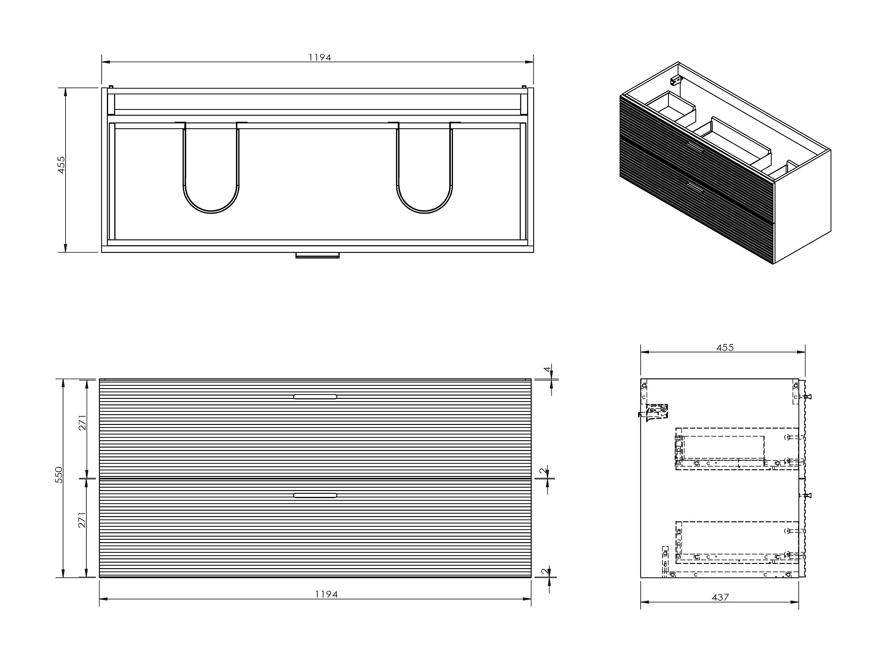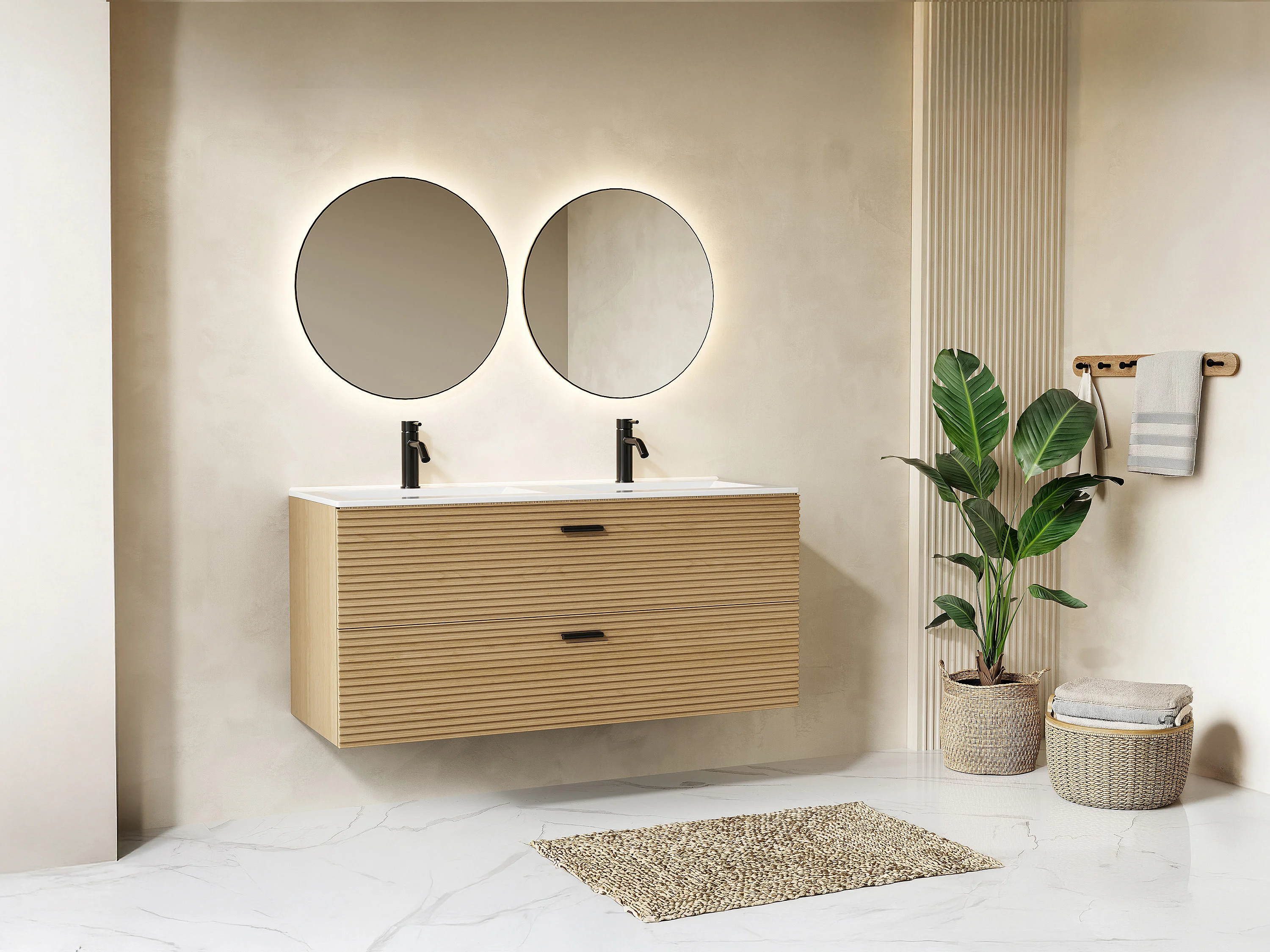 Meuble de salle de bain suspendu strié avec vasque à encastrer et robinet - 2 tiroirs - Naturel clair - 120 cm - SARONE