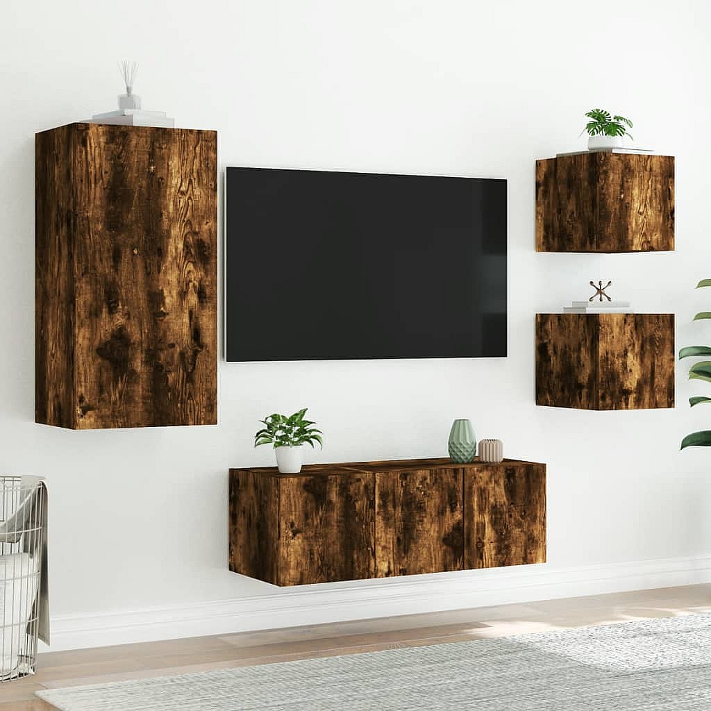 Sart-Saint-Laurent Unités murales TV avec LED 5 pcs chêne fumé bois d'ingénierie