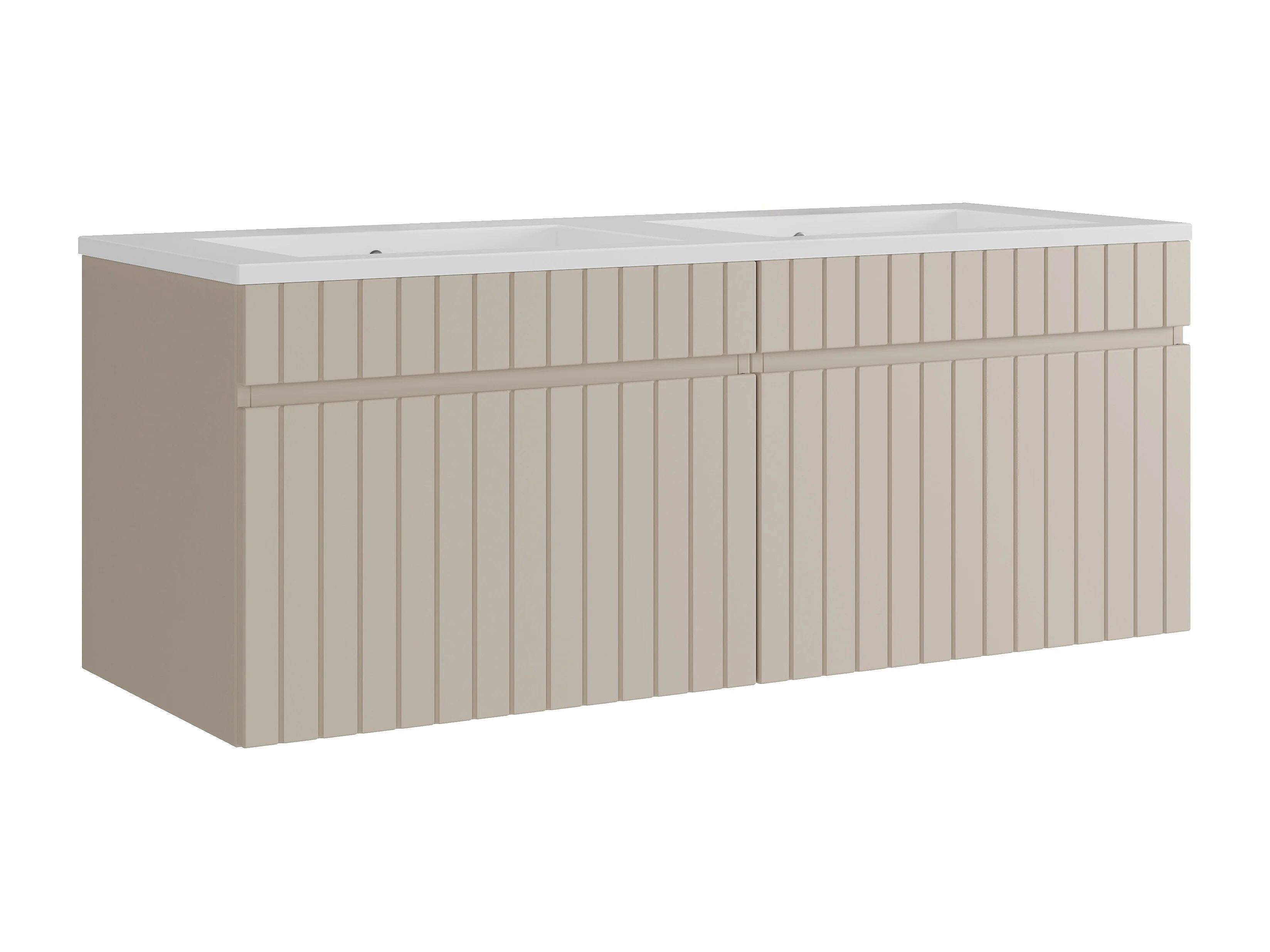 Meuble de salle de bain suspendu strié beige avec vasque à encastrer - 120 cm - SATARA