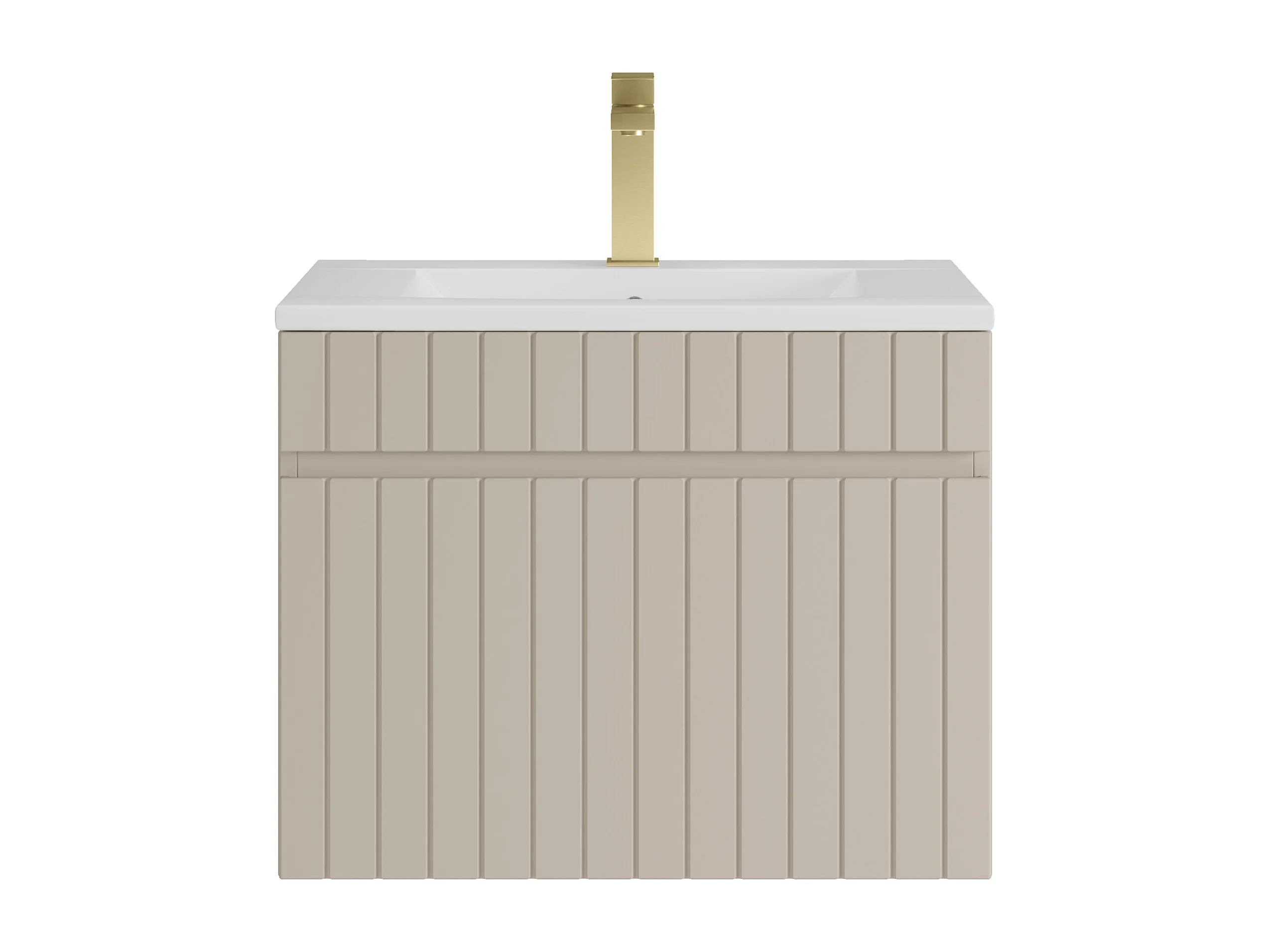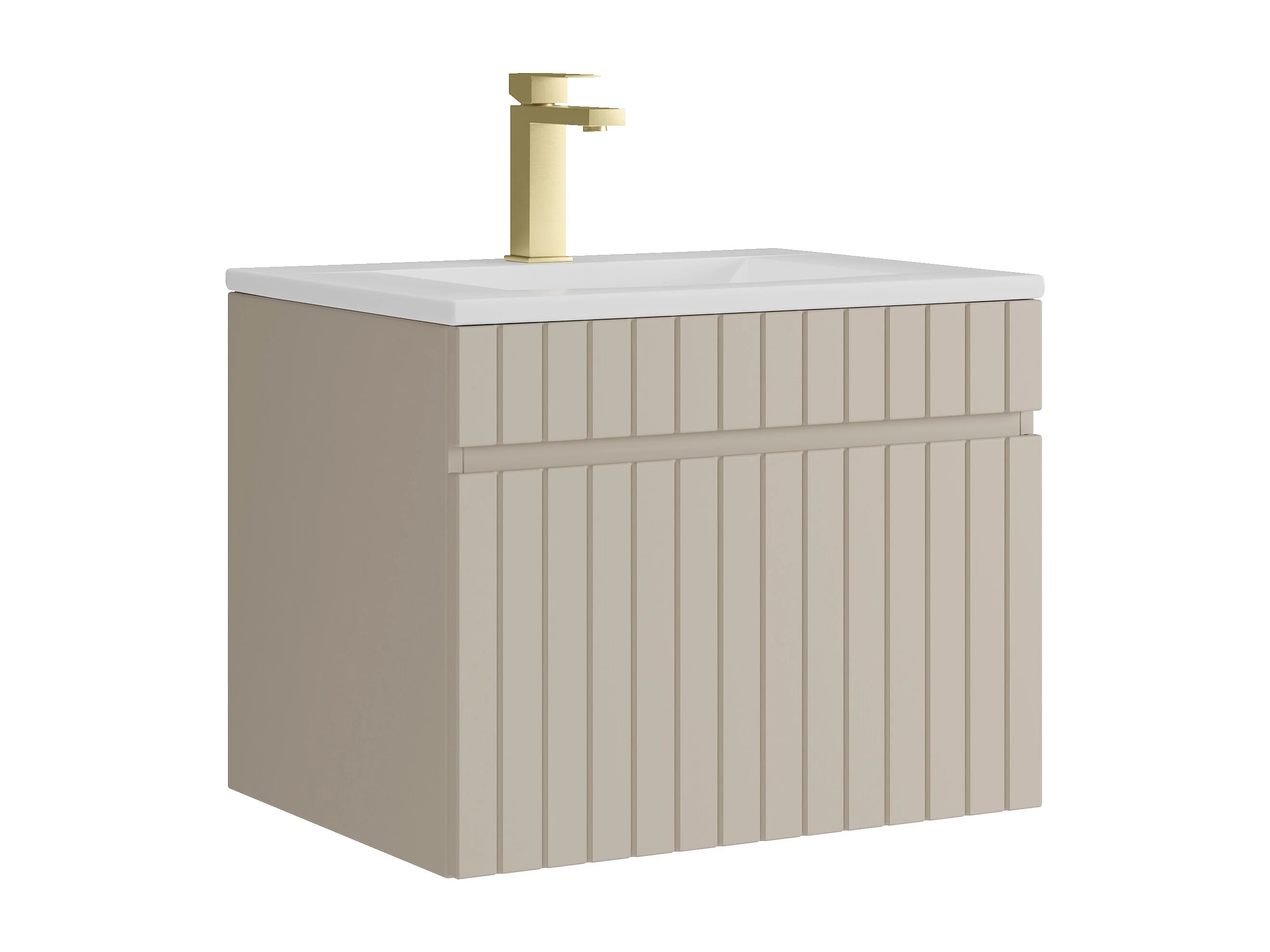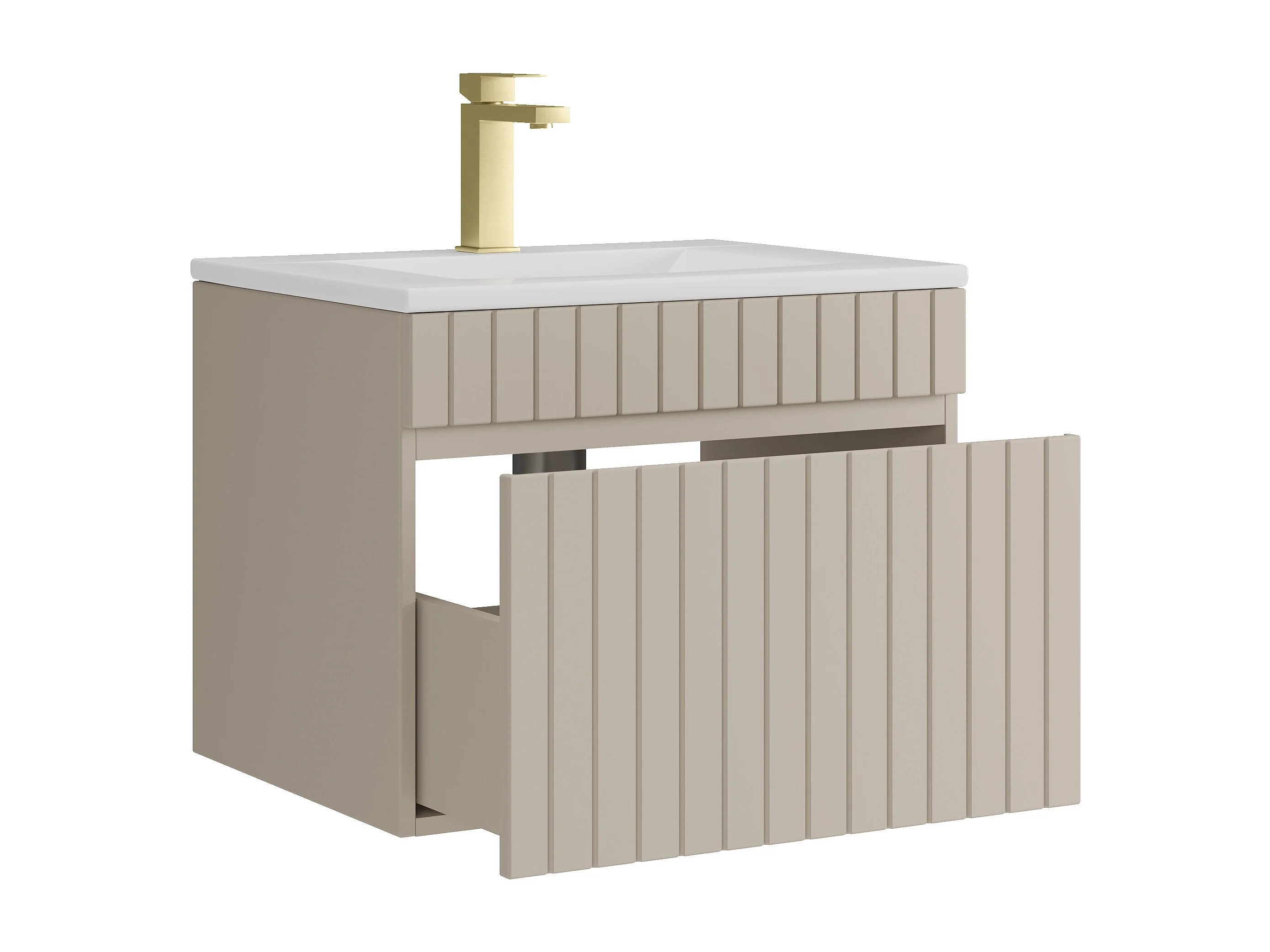 Meuble de salle de bain suspendu strié beige avec vasque à encastrer et robinet - 60 cm - SATARA