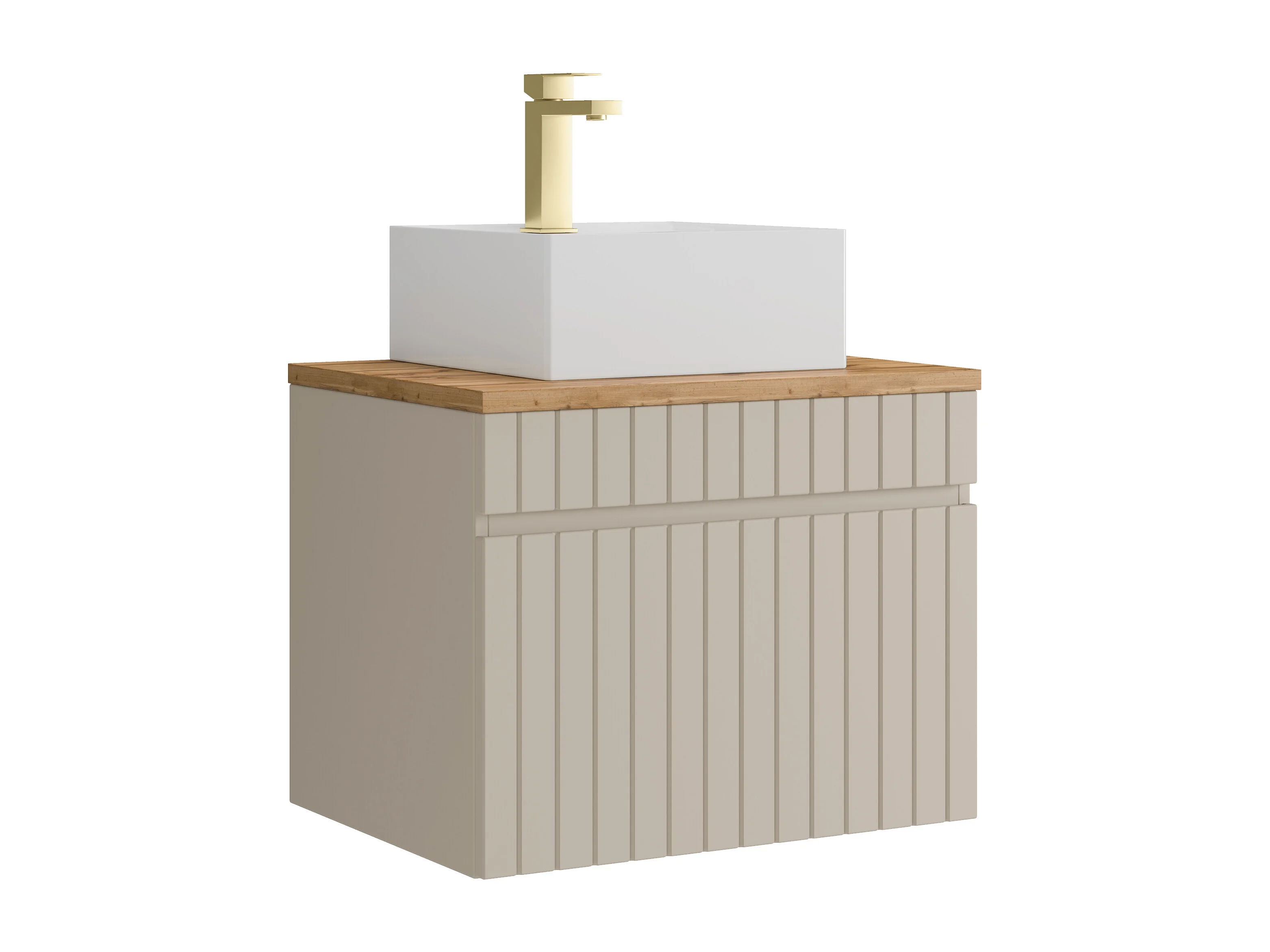 Meuble de salle de bain suspendu strié beige avec vasque à poser carrée et robinet - 60 cm - SATARA