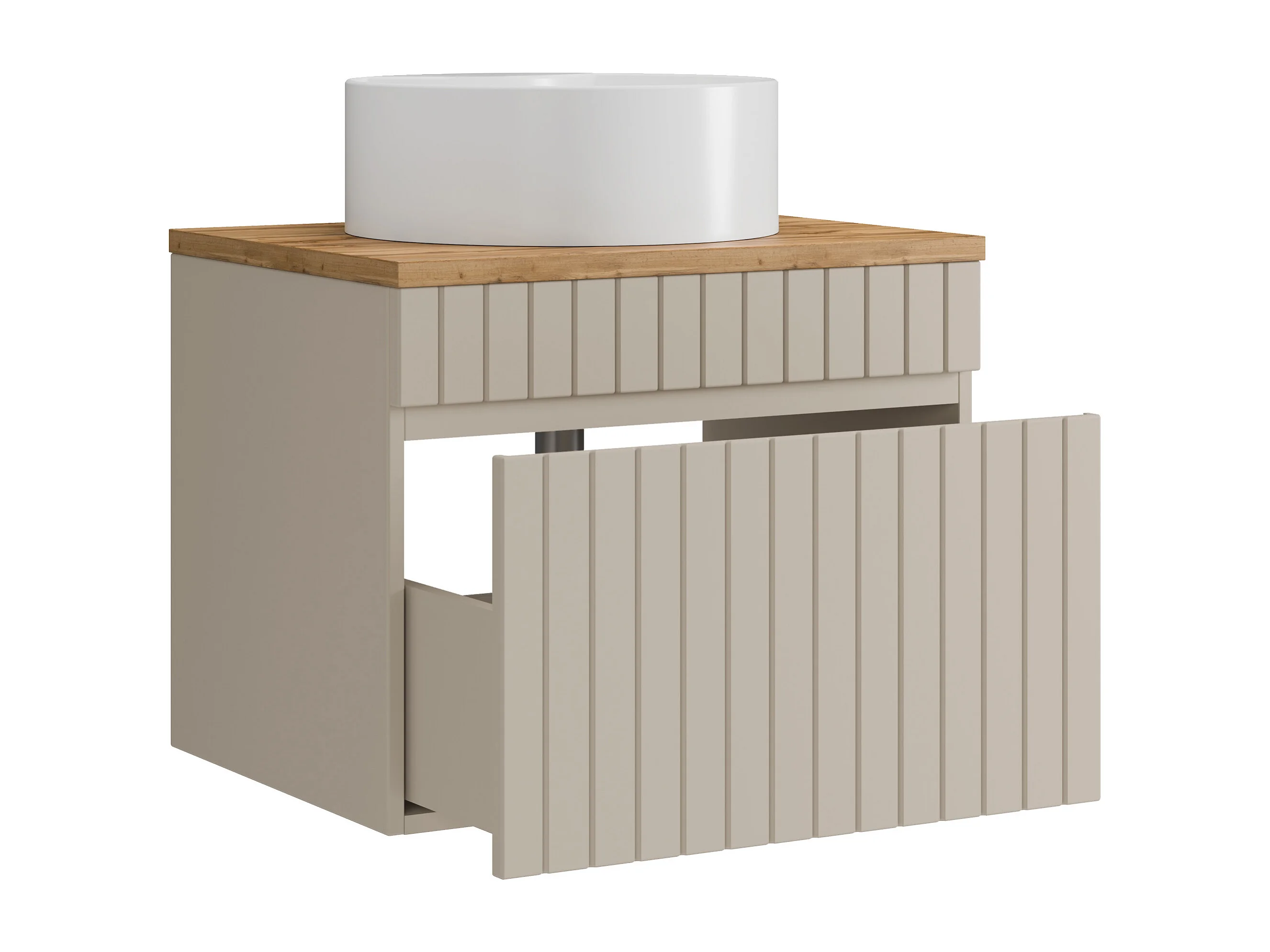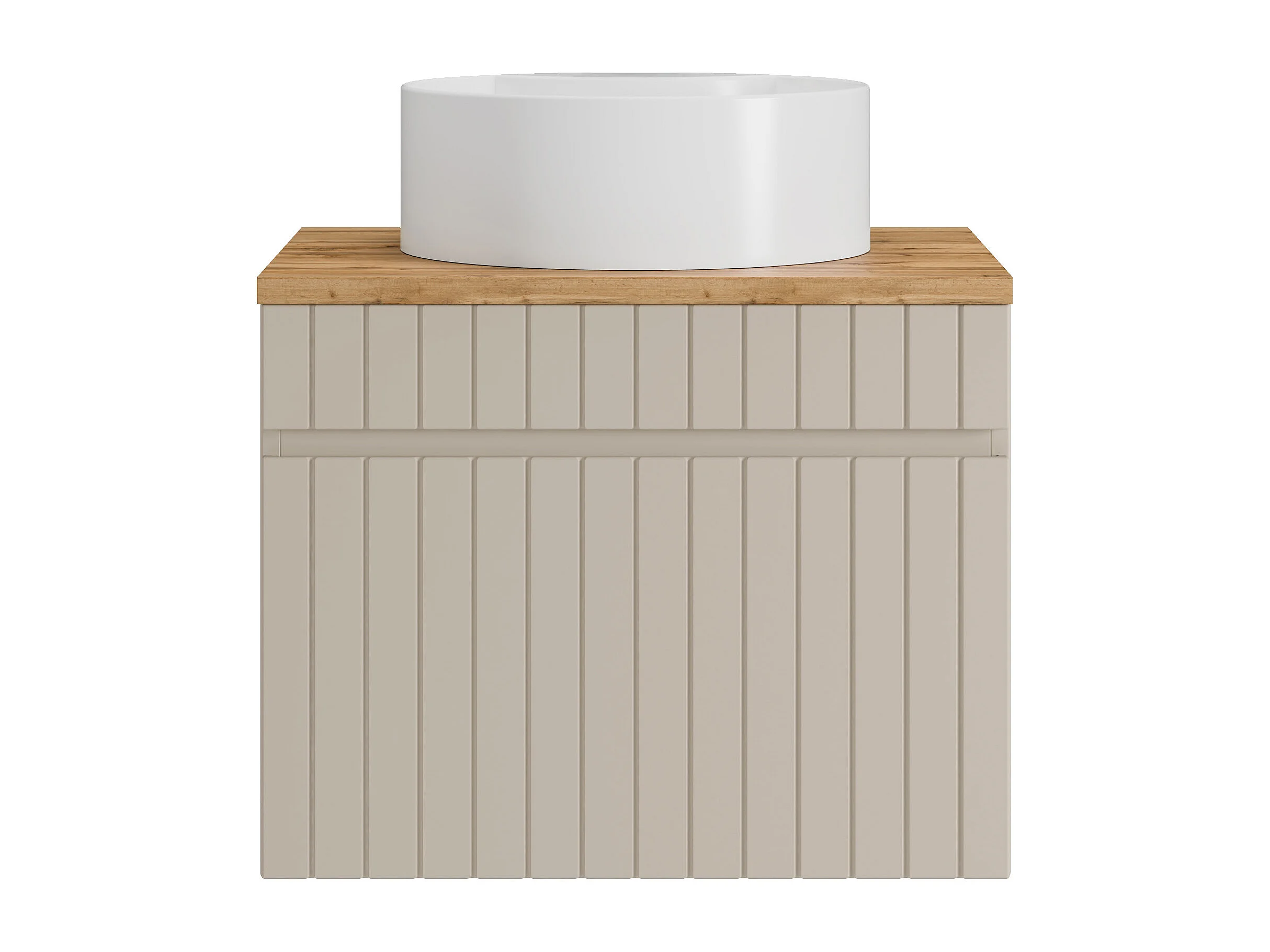Meuble de salle de bain suspendu strié beige avec vasque à poser ronde - 60 cm - SATARA