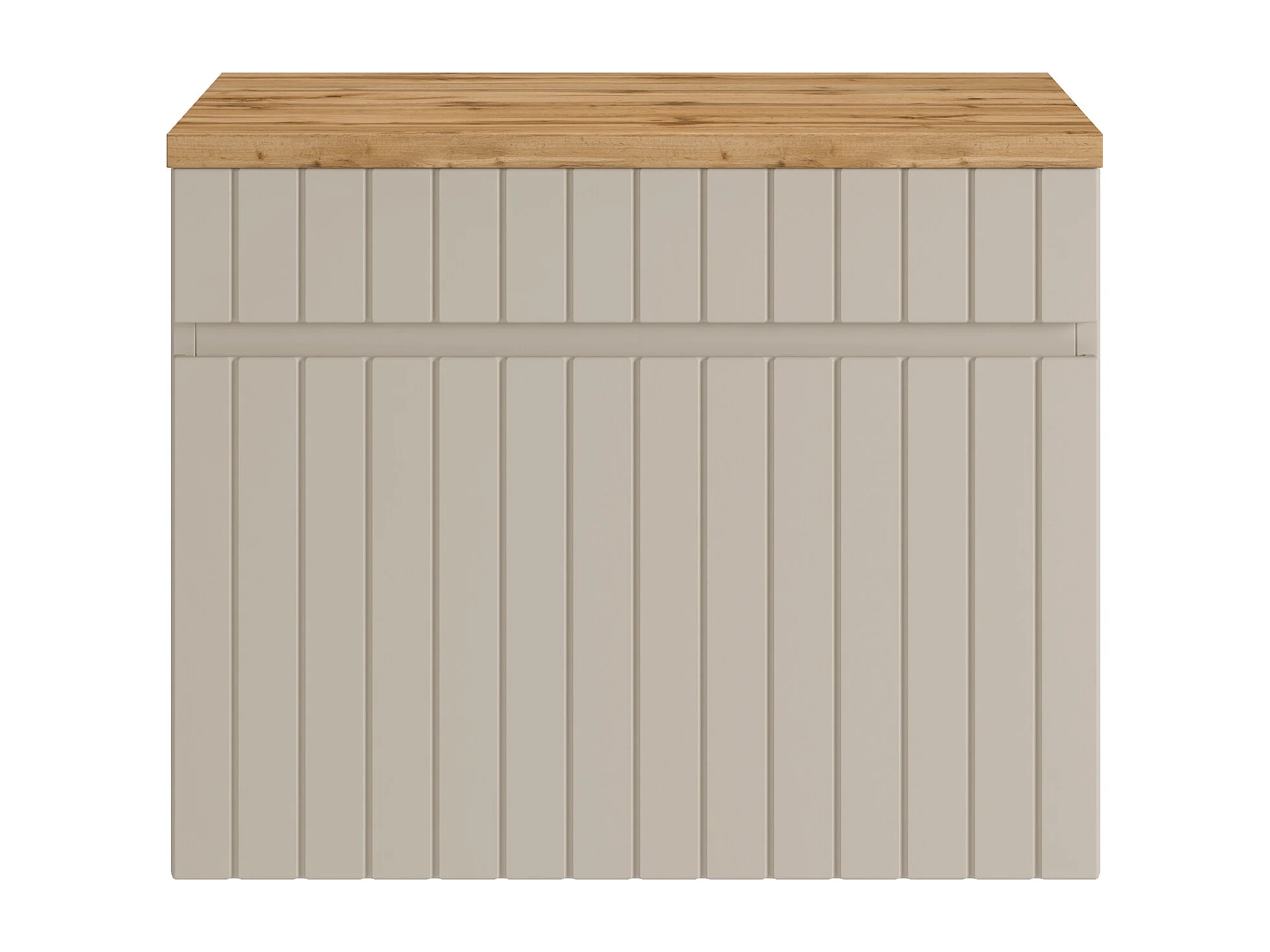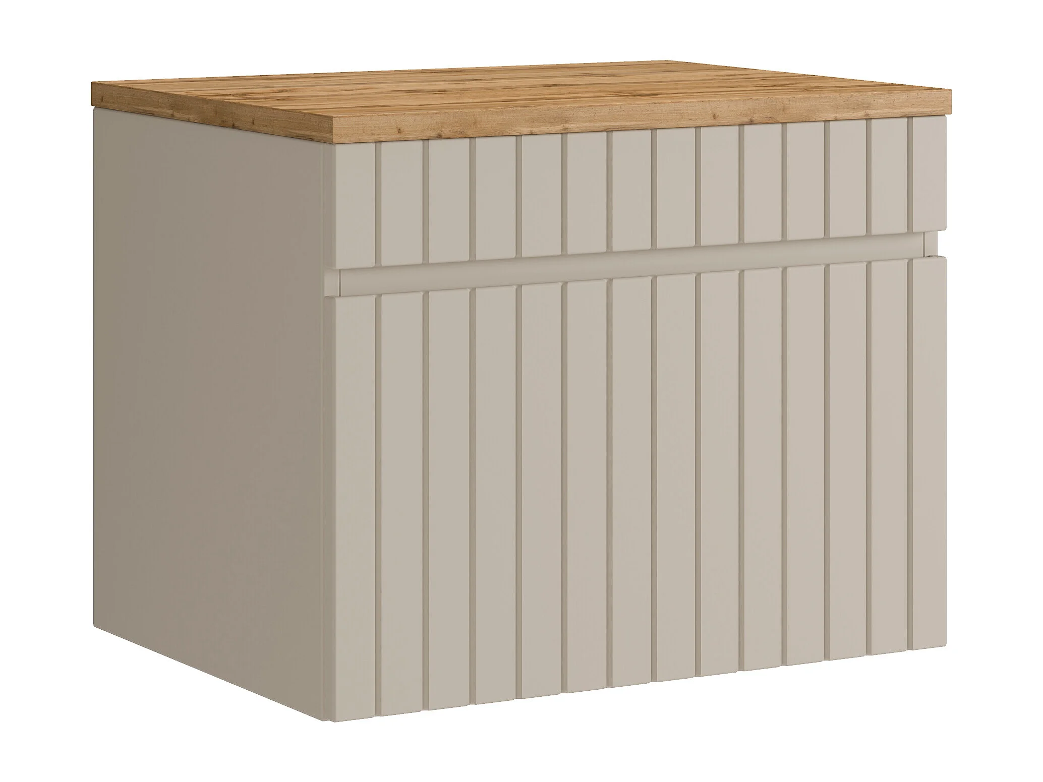 Meuble sous vasque suspendu strié beige avec planche - 60 cm - SATARA