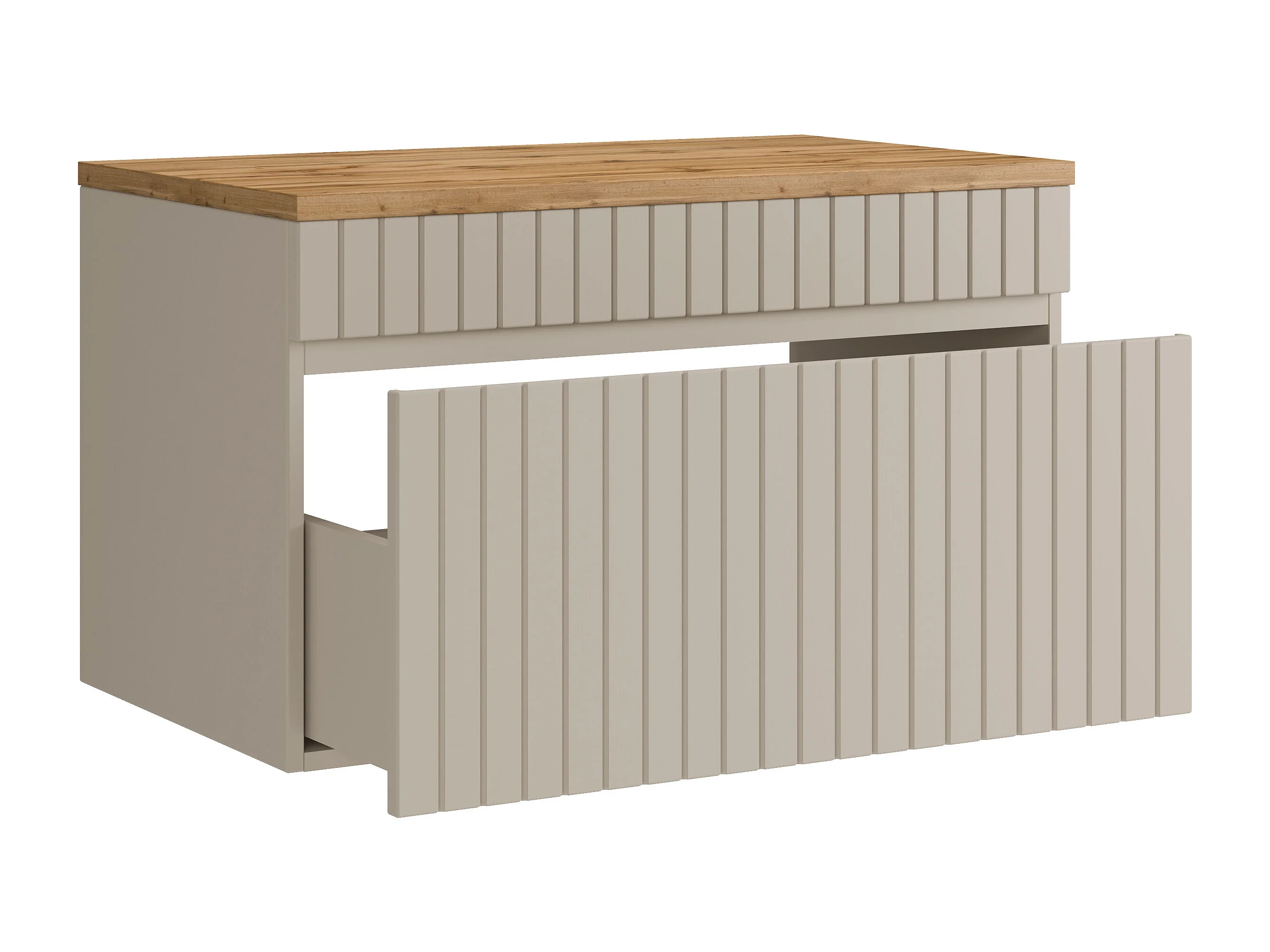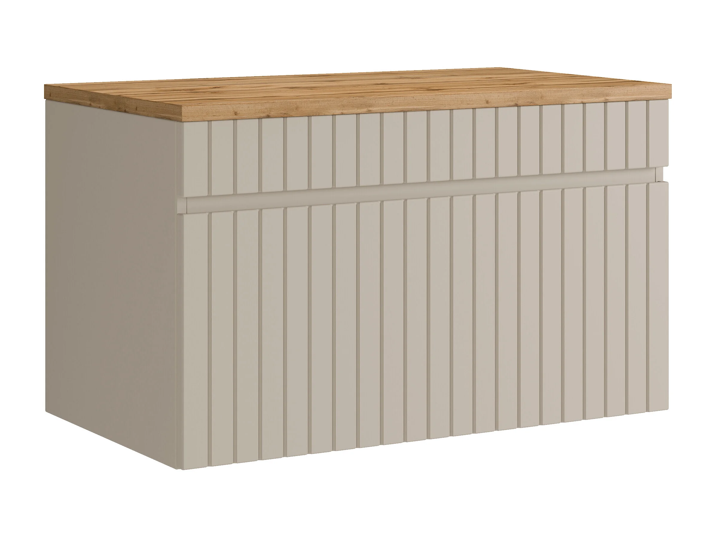 Meuble sous vasque suspendu strié beige avec planche - 80 cm - SATARA