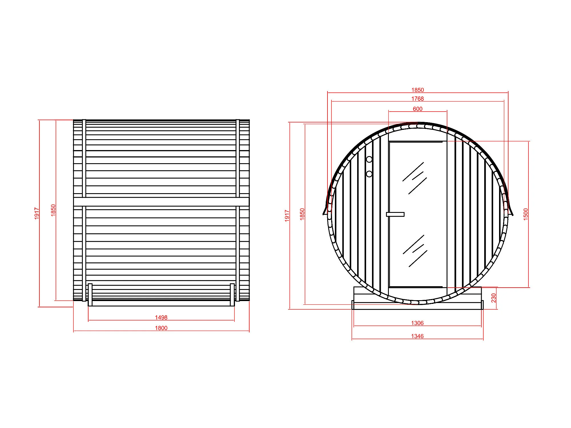 Sauna extérieur en tonneau 4 places - L185 x P180 x H190 cm - ISOKYRO