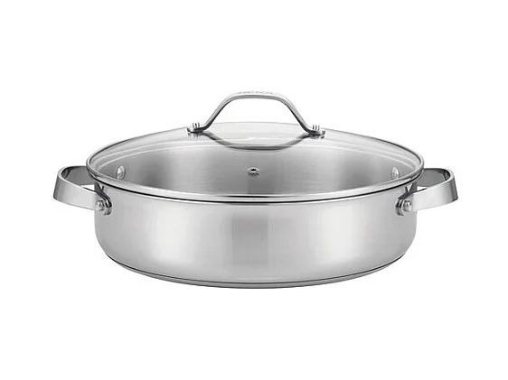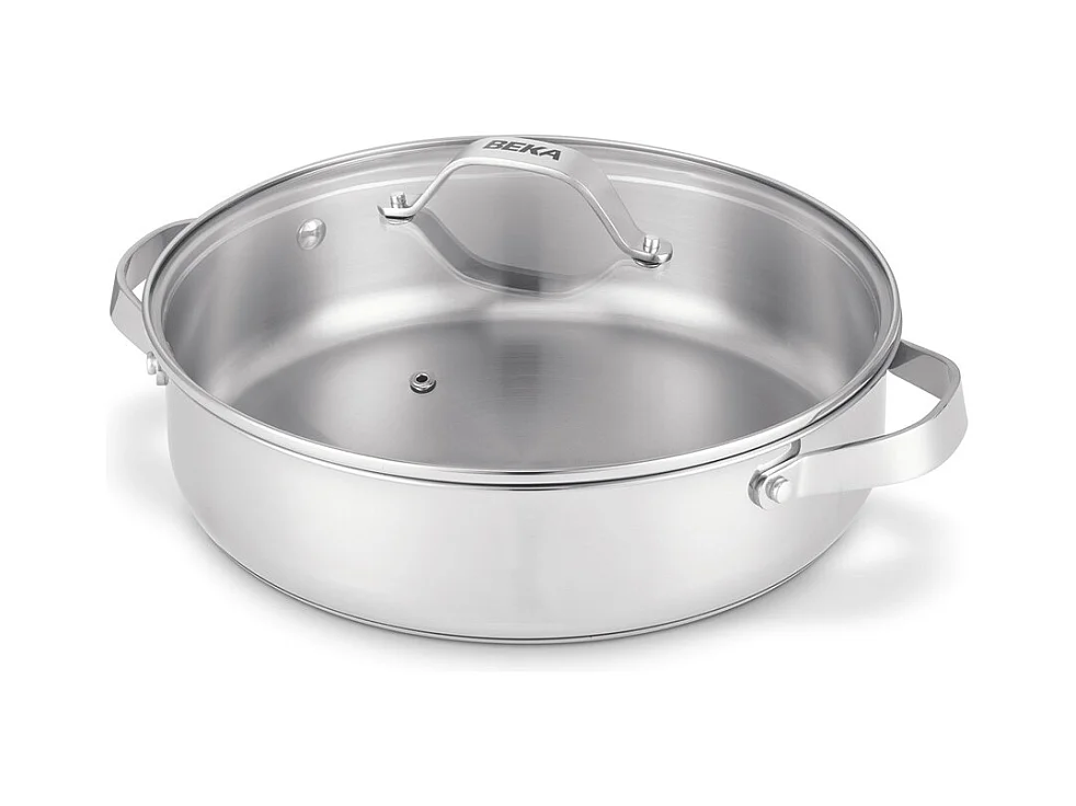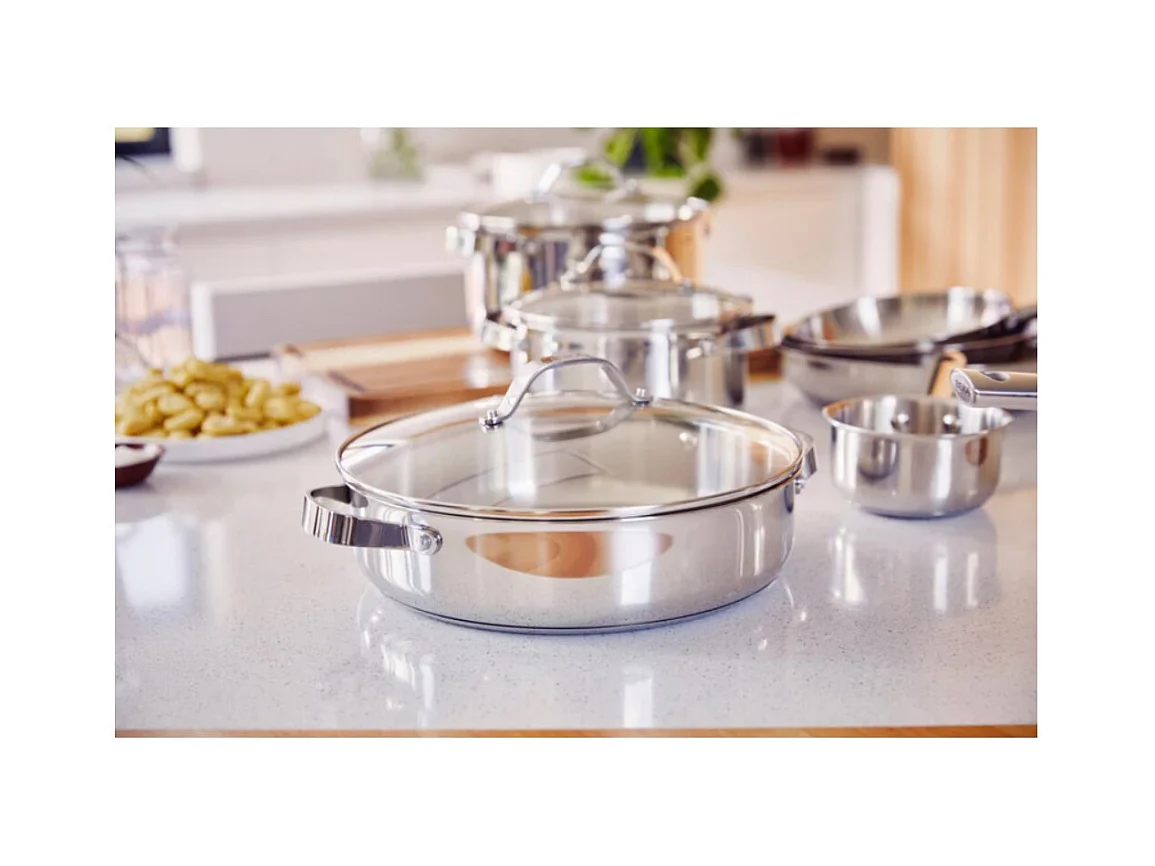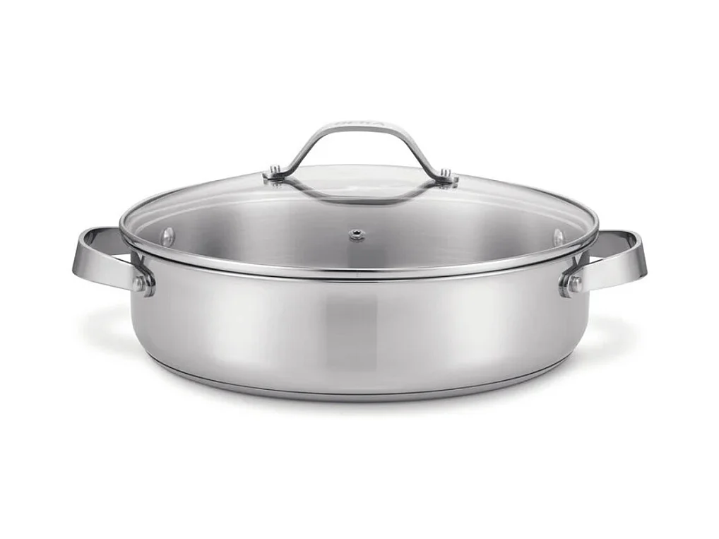 Sauteuse 2 anses Cicla avec couvercle en verre 28 cm en acier inoxydable recyclé