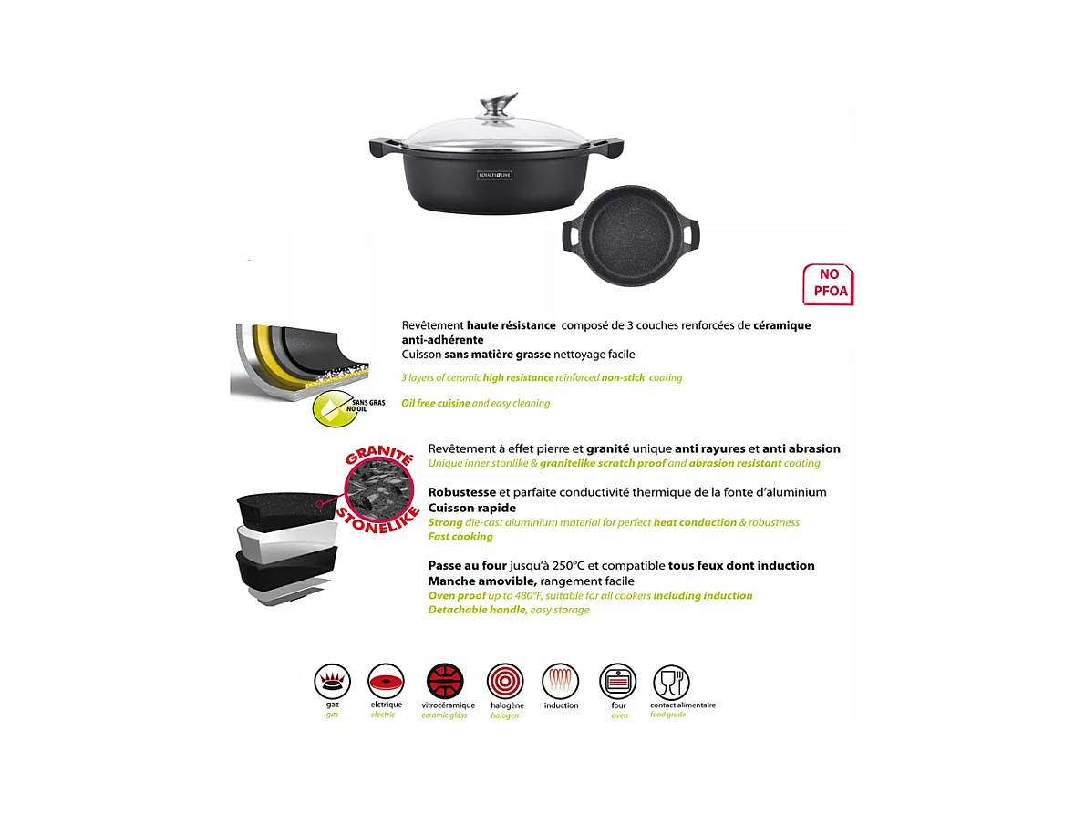 Royalty Line RL-BR28M : Marmite À Soupe Peu Profonde En Marbre 28cm