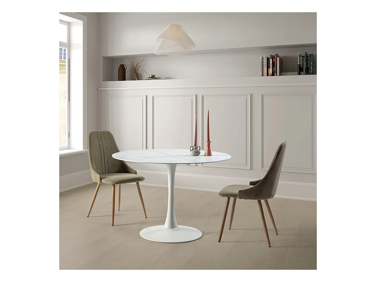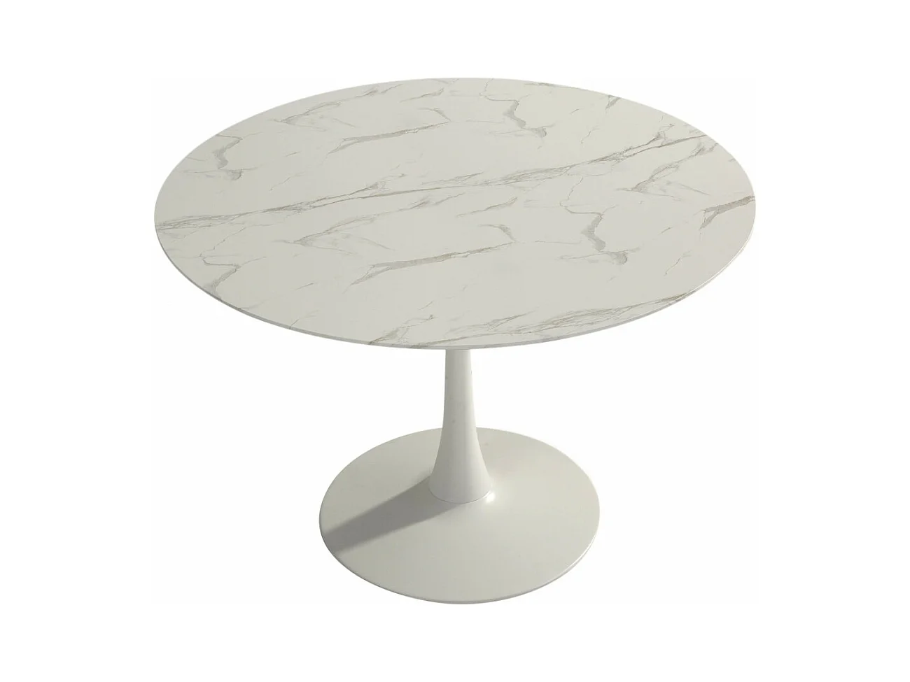 SCARS - Table Ronde Ø110cm Céramique Blanche Motif Craquelures