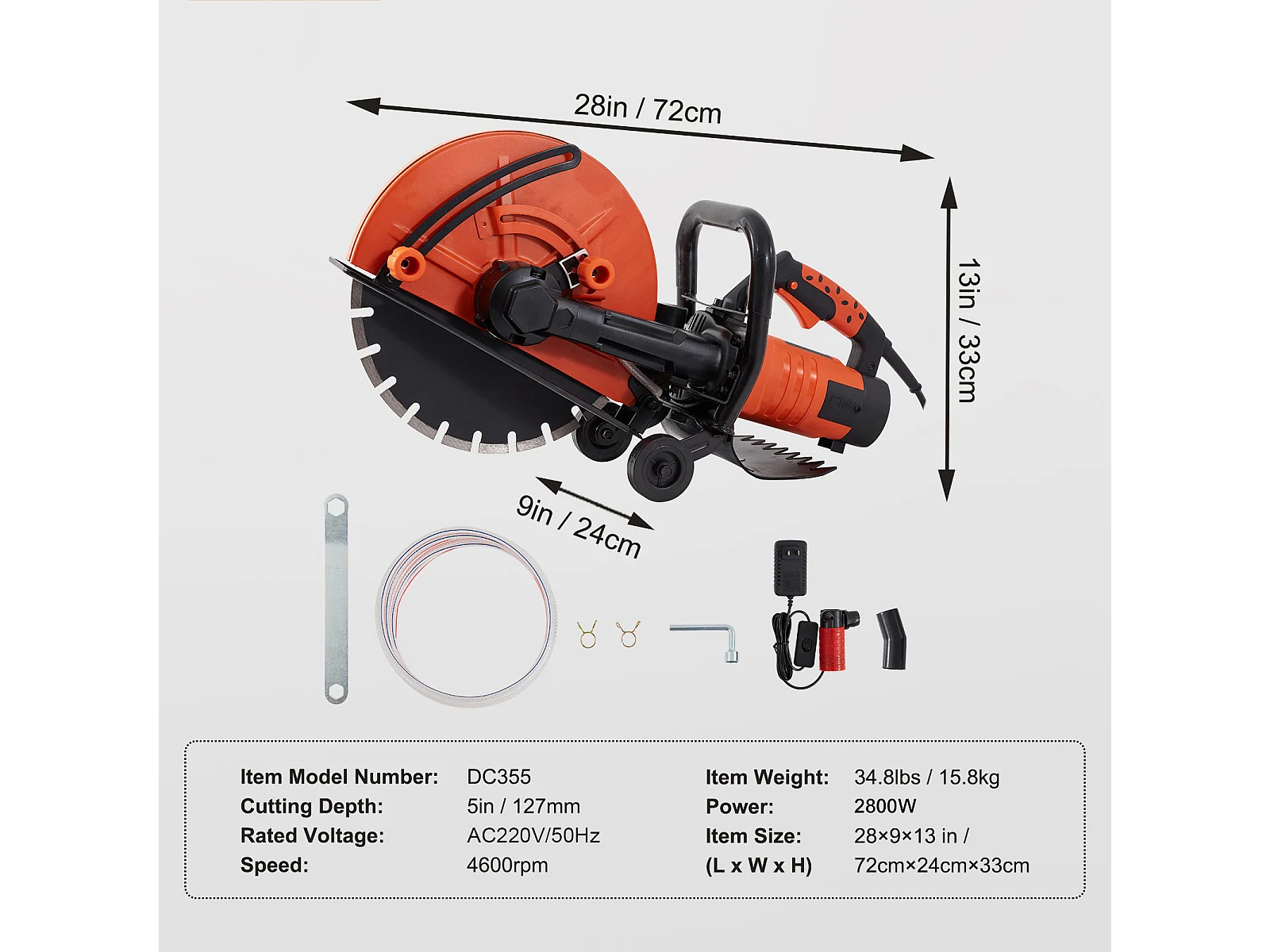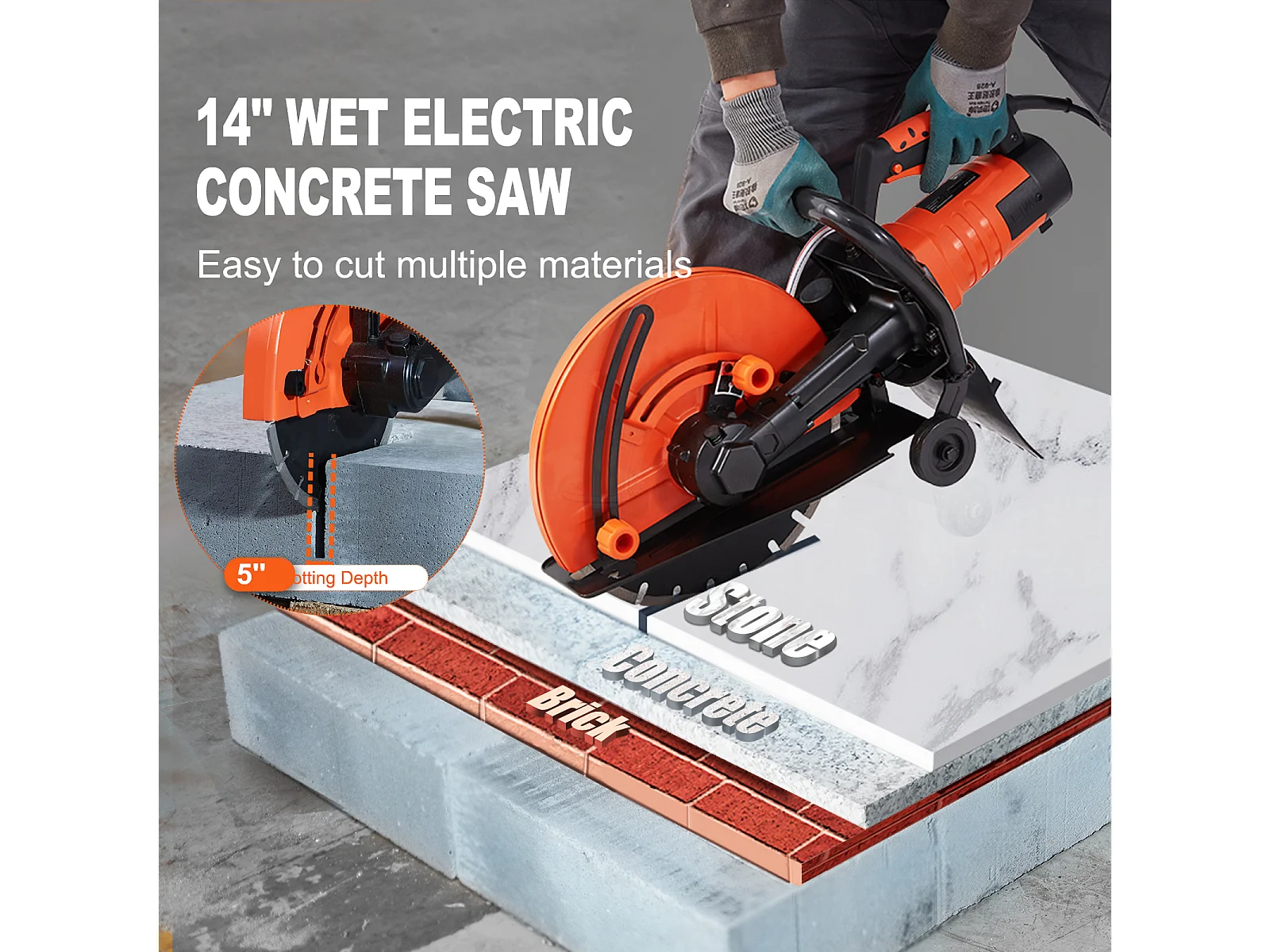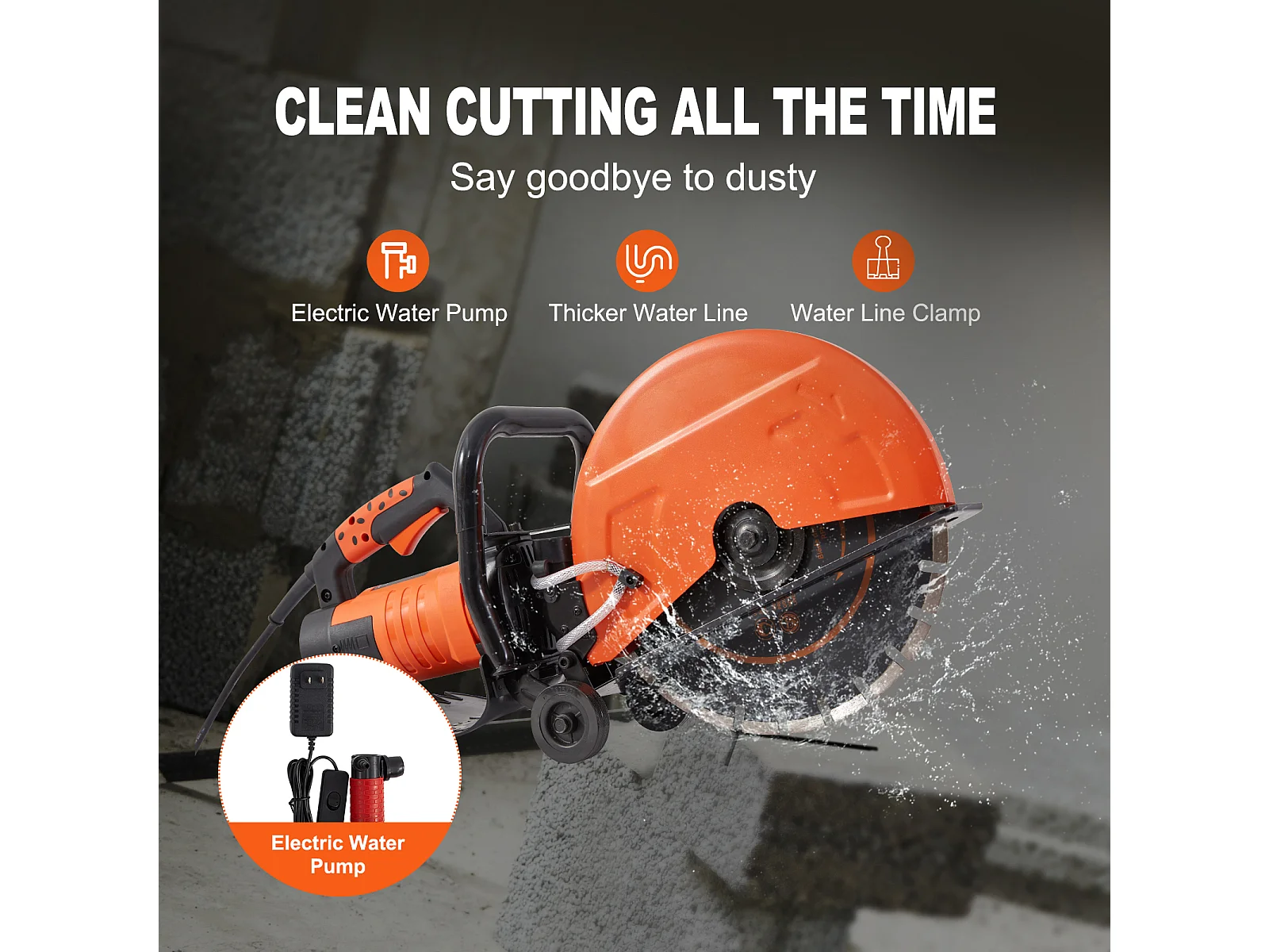 Scie à Béton Électrique SucceBuy 35.5Cm, Humide/Sec, avec Pompe à Eau et Lame