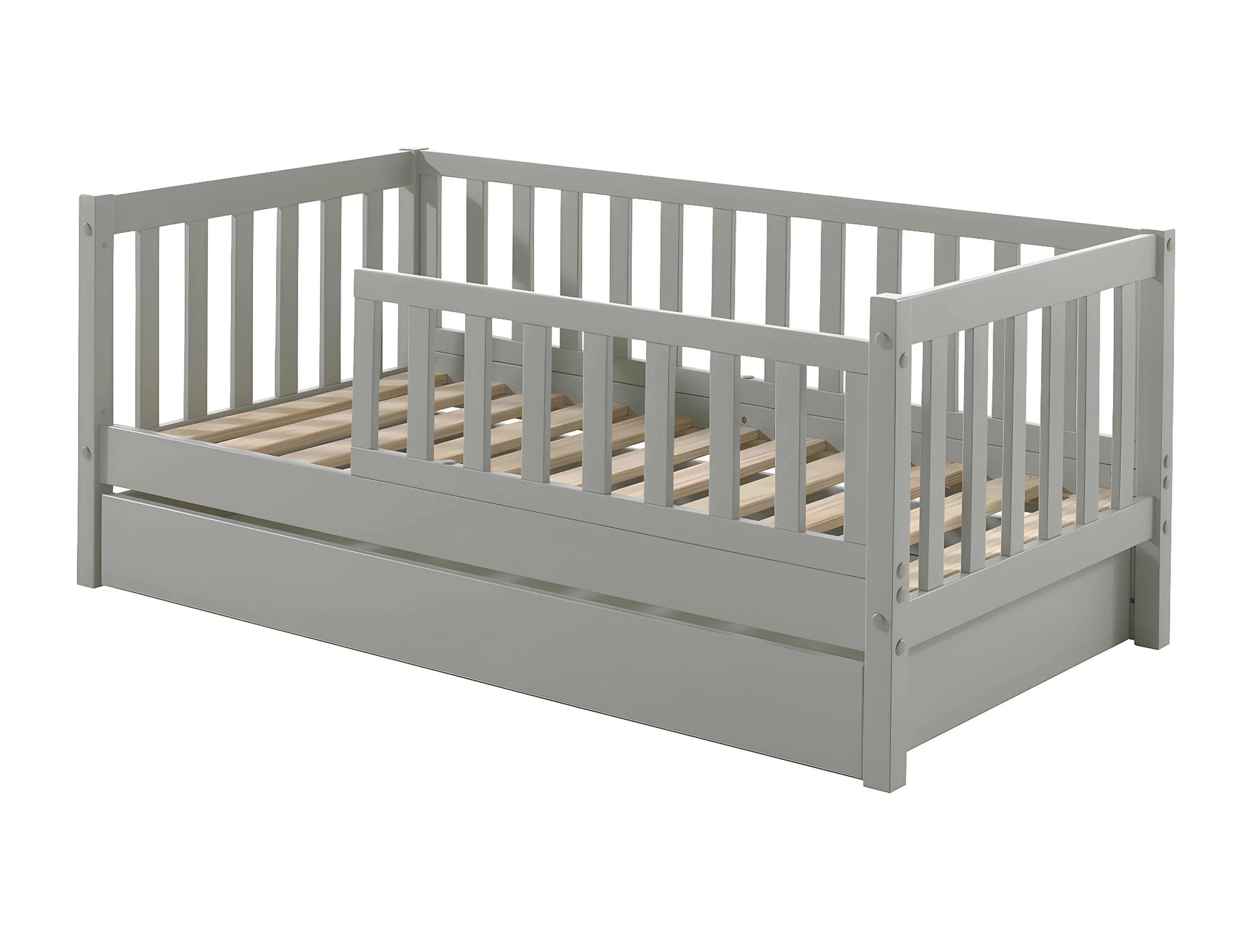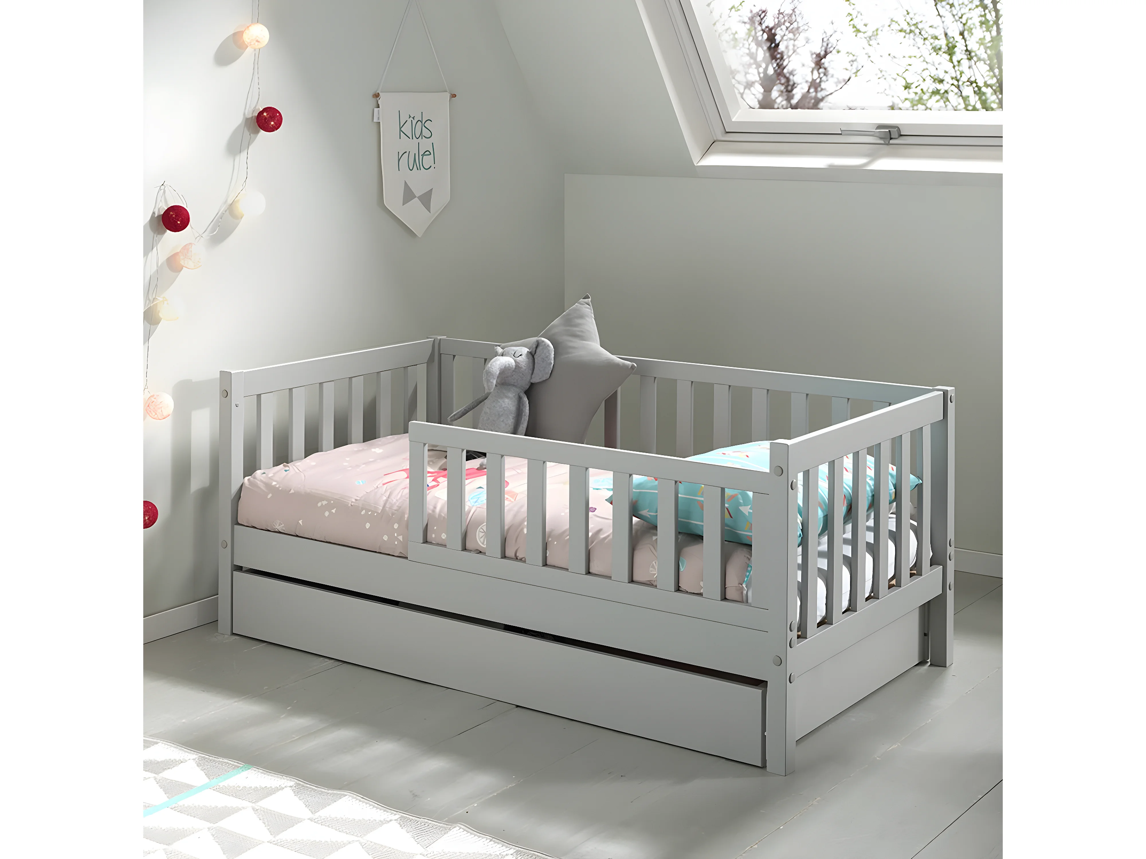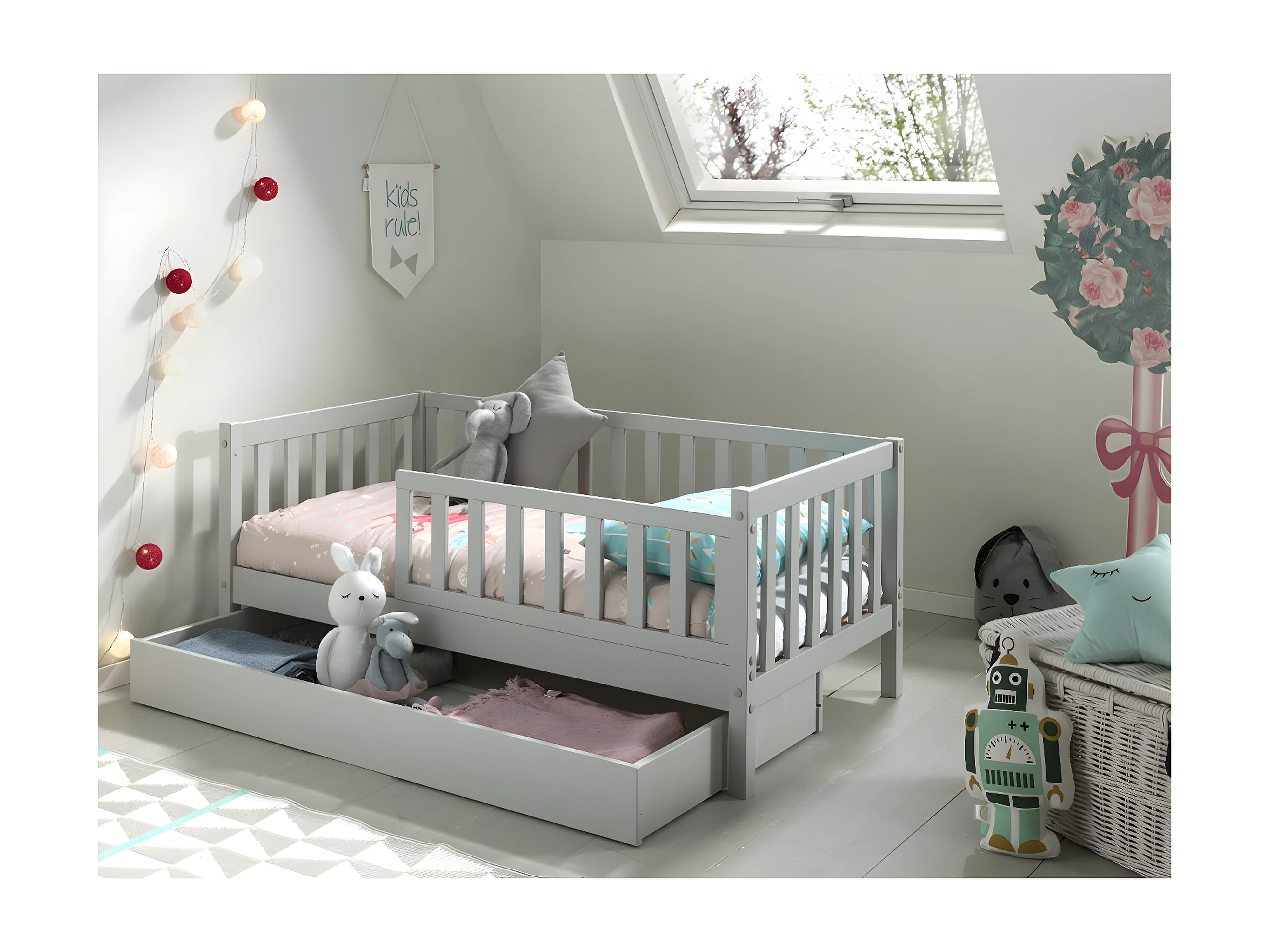 SCOPE - Lit Junior 70x140cm Gris Barrières Verticales + Tiroir