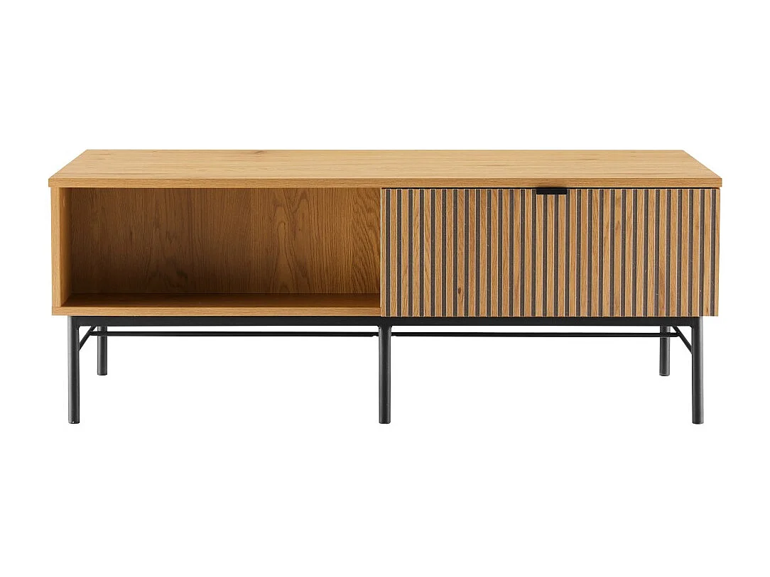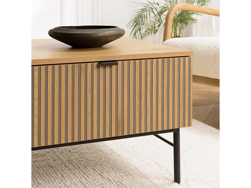 SCOTT - Table basse 2 tiroirs bois décor effet rainuré noir/naturel