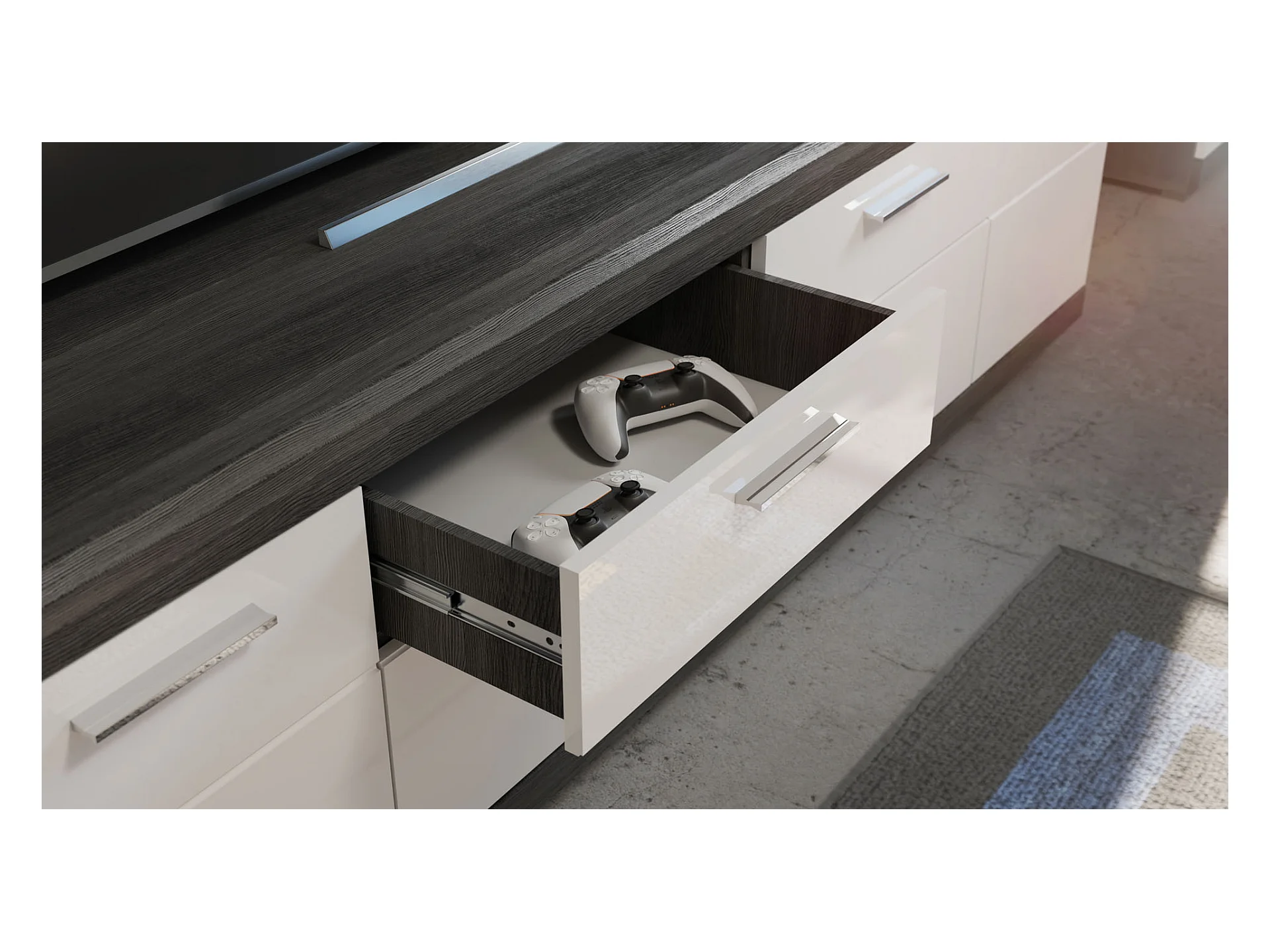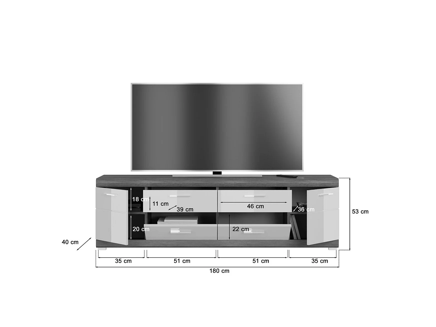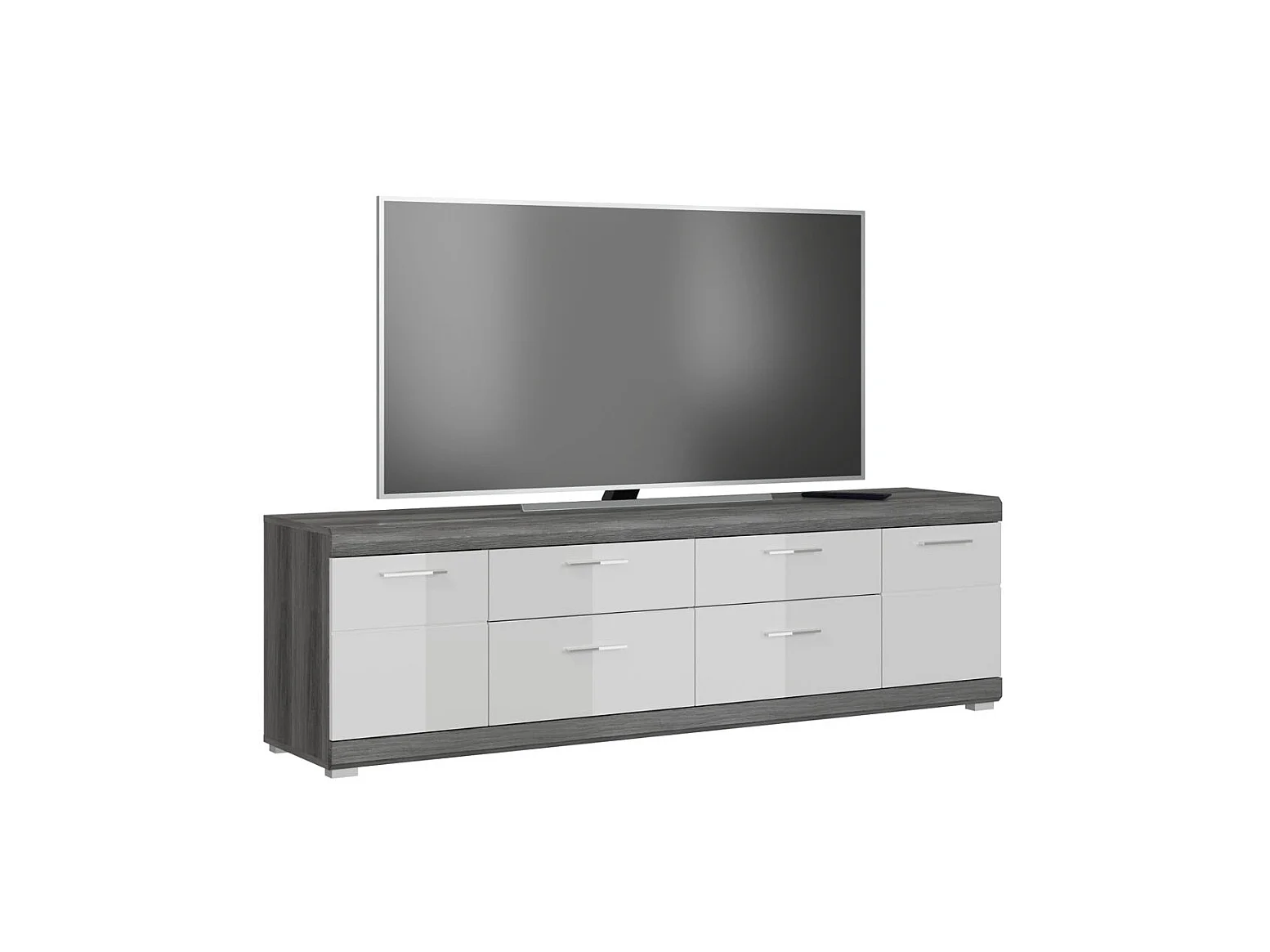 Scout table tV 2 portes, 2 tiroirs gris.