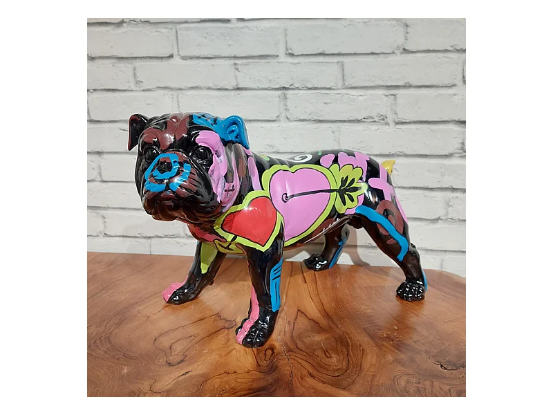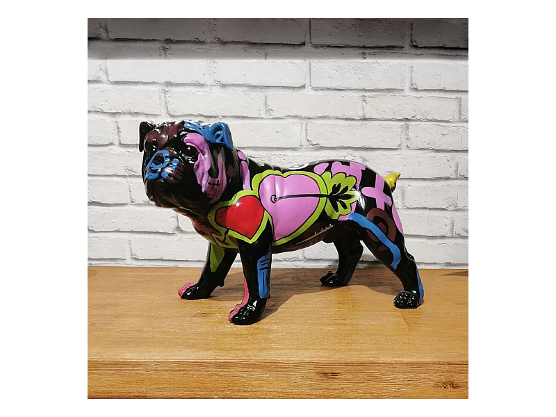 Sculpture Chien en résine peinture multicolore H 26 cm - DOGGY CARL