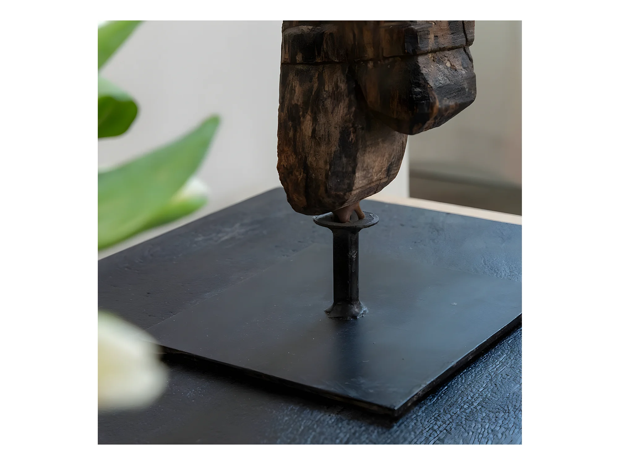SCULPTURE Bouddha Béton, sur socle en racine de bois gris-brun