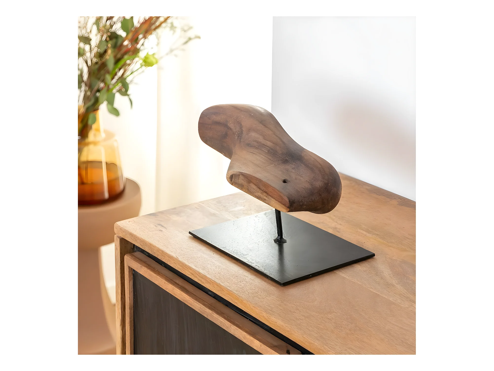 Sculpture ronde en bois de teck flotté sur socle H 120 cm - WOODY
