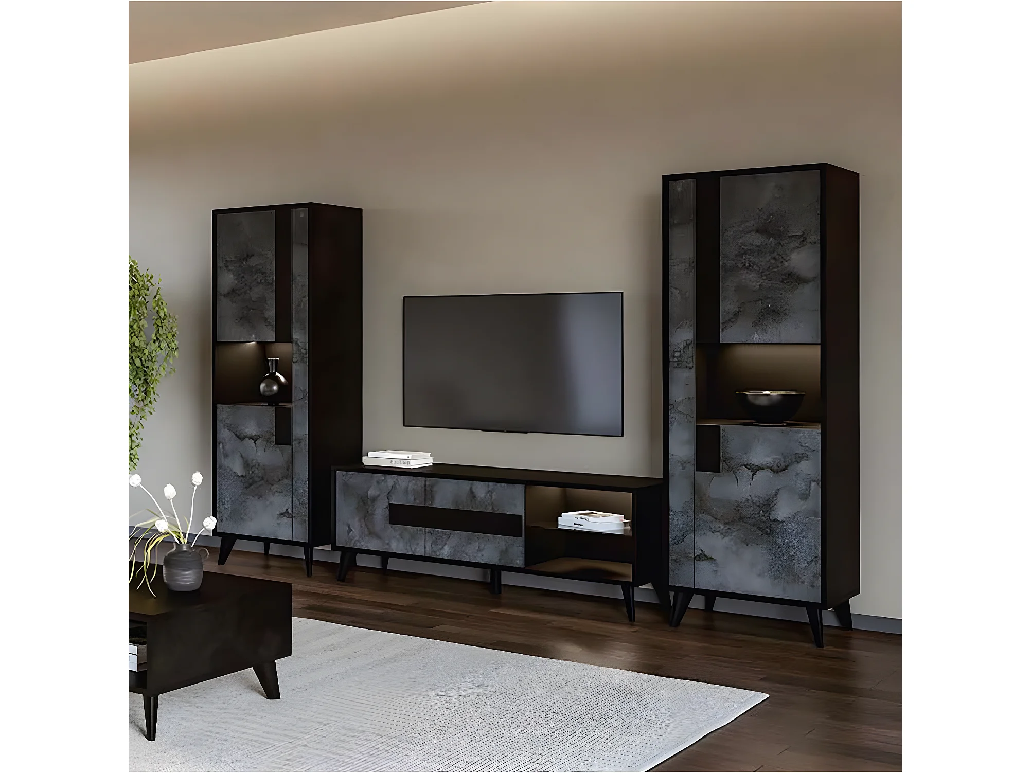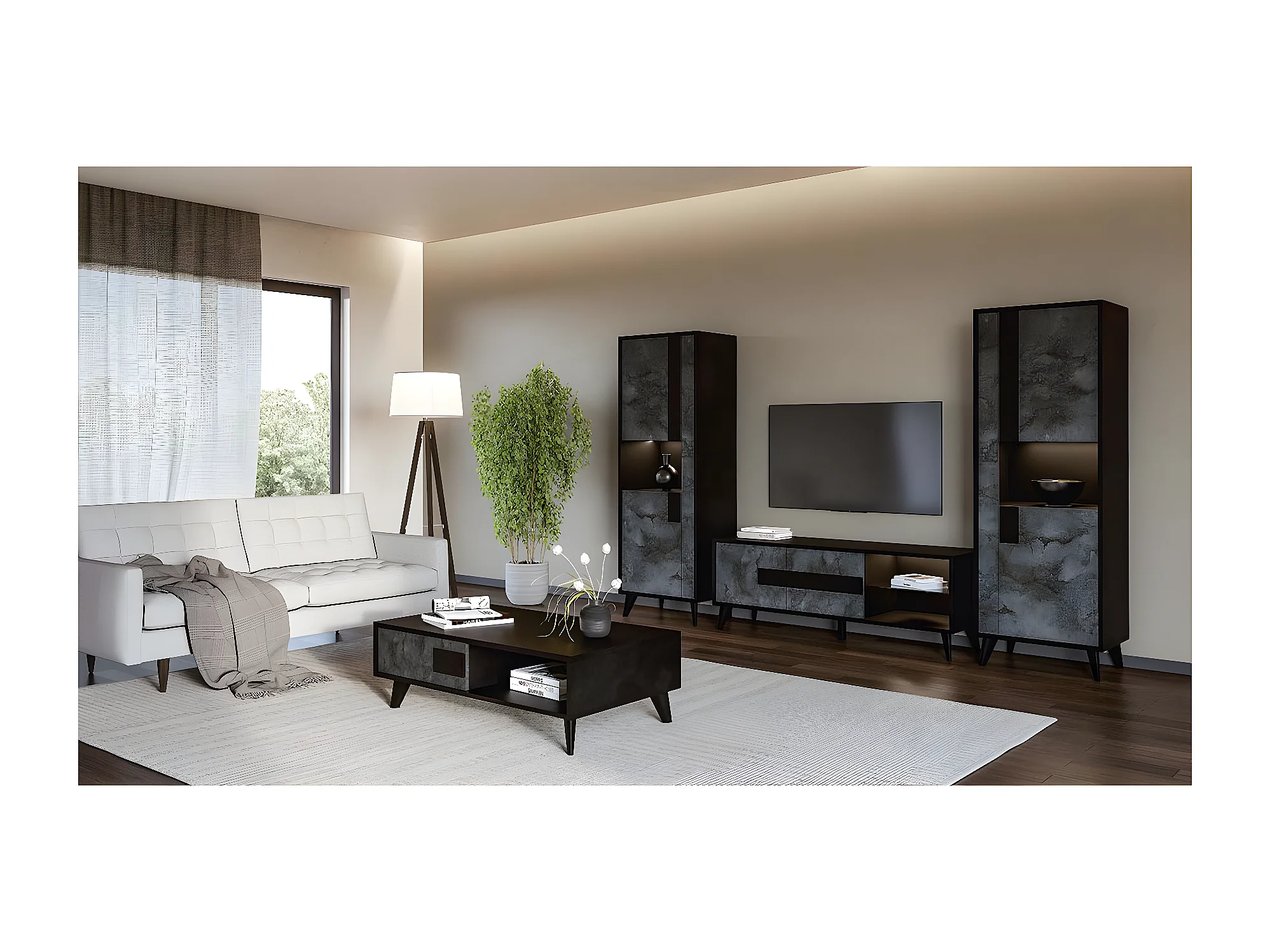 SEATTLE - Colonne de Rangement Droite Noire et Effet Métal Oxydé avec Leds
