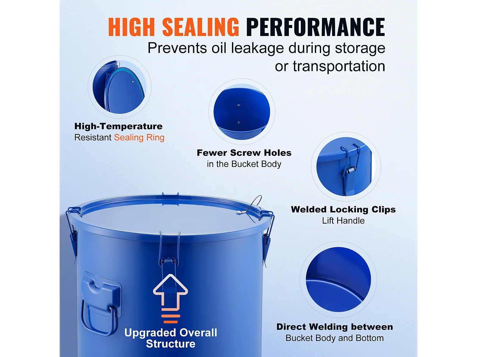 Seau à Graisse SucceBuy pour Friteuse, 30 L, Panier D'élimination de L'huile avec Sac Filtrant, Bleu, Acier au Carbone avec Revêtement Antirouille